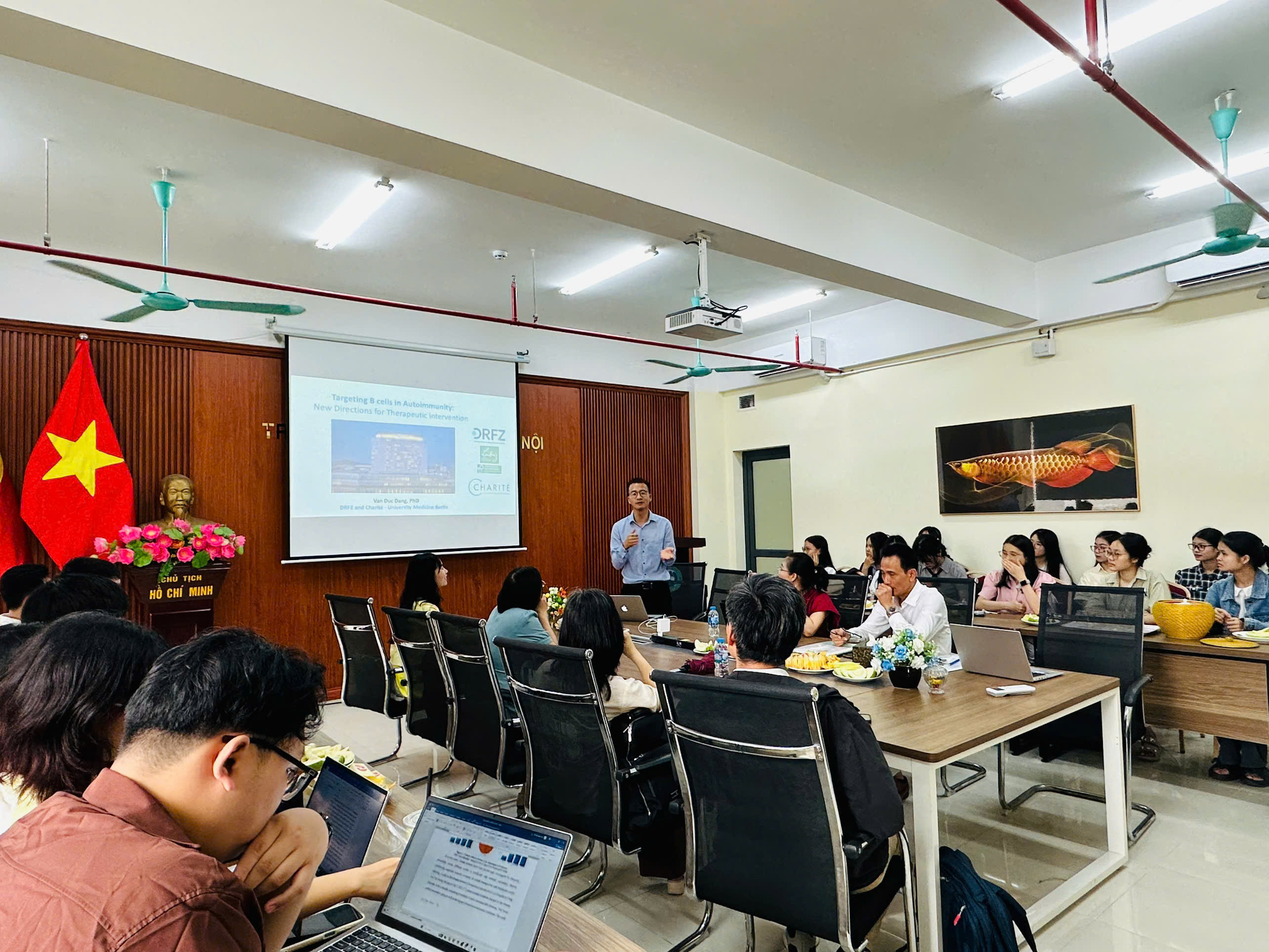 Chiều ngày 3/4/2026, tại phòng họp 403, nhà A1, chuyên ngành Sinh học thực nghiệm, Bộ môn Sinh lí học người và động vật - Khoa Sinh học - Trường Đại học Sư phạm Hà Nội đã tổ chức thành công buổi seminar khoa học với chủ đề “Liệu pháp miễn dịch trong điều trị ung thư và bệnh tự miễn hiện nay”.