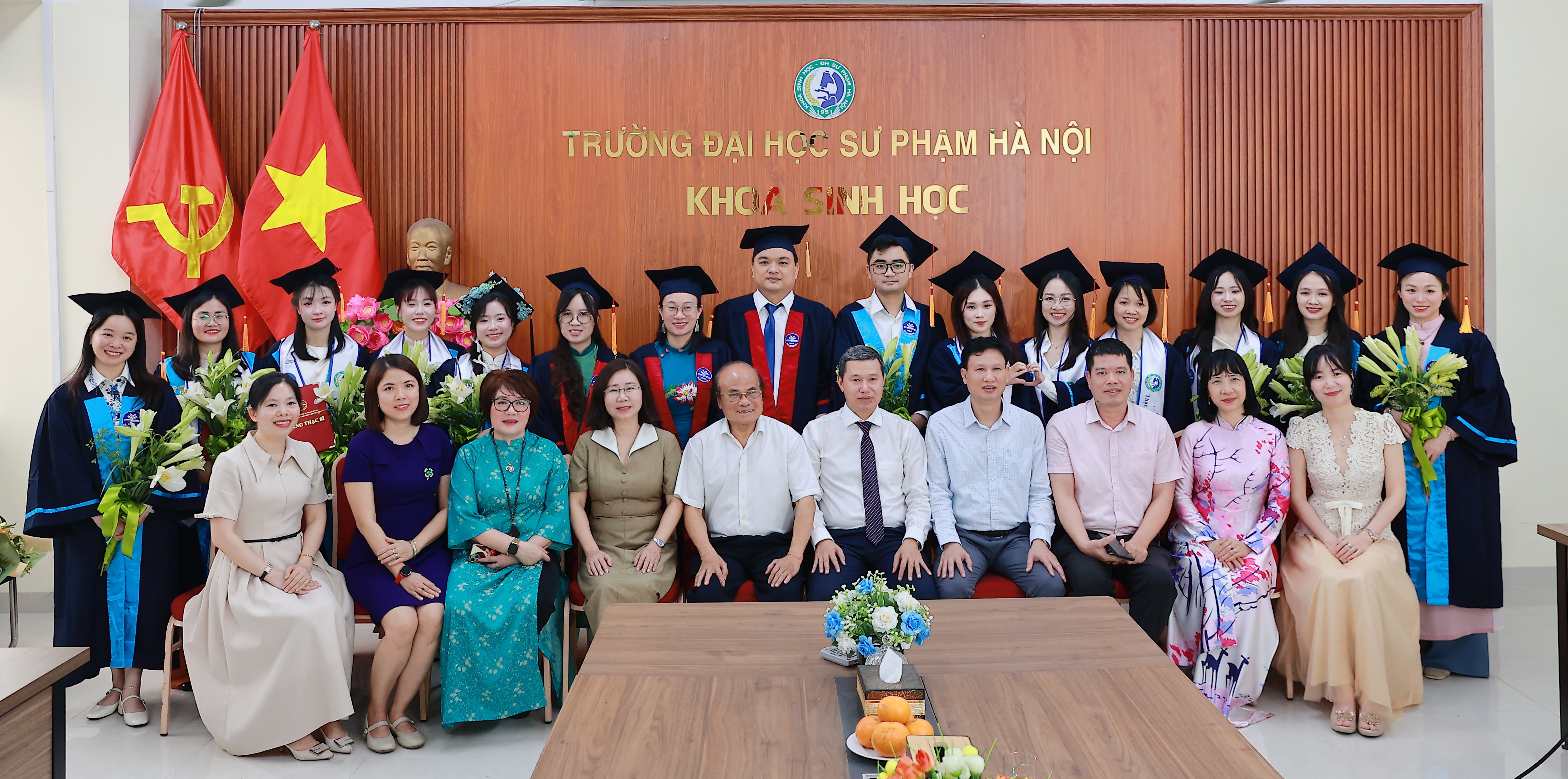 Sáng ngày 17/4/2026, Trường Đại học Sư phạm Hà Nội đã long trọng tổ chức Lễ trao bằng Tiến sĩ và Thạc sĩ cho các nghiên cứu sinh, học viên tốt nghiệp năm 2025. Hòa chung không khí trang trọng và ý nghĩa đó, Khoa Sinh học đã tổ chức buổi gặp mặt chúc mừng các tân Tiến sĩ, Thạc sĩ của Khoa, nhằm ghi nhận và tôn vinh những nỗ lực bền bỉ trong suốt hành trình học tập, nghiên cứu của người học.