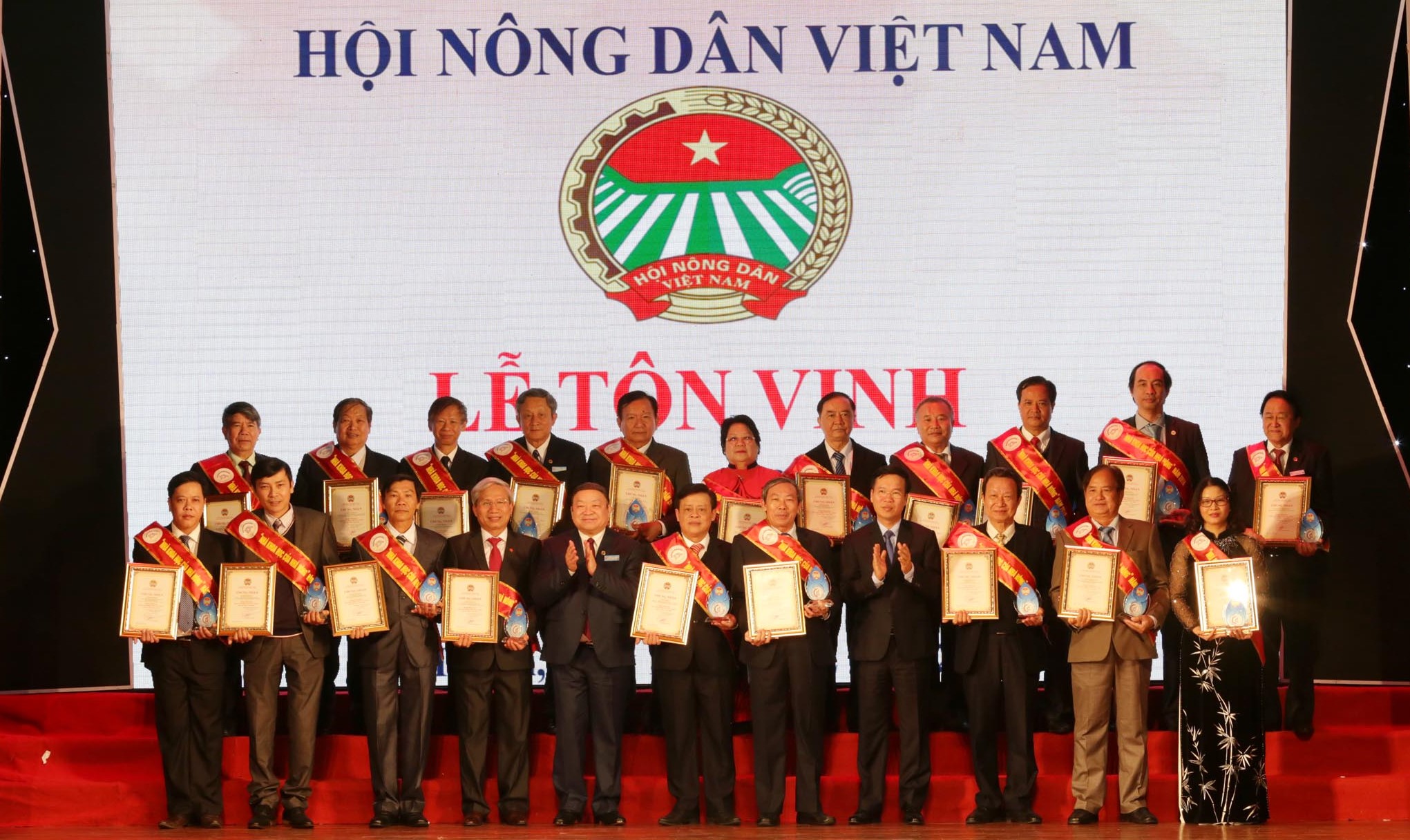 Ảnh 7. Thầy Nguyễn Lân Hùng và GS.TS. Phạm Thị Thùy nhận Giải thưởng Nhà khoa học của Nhà nông lần thứ I năm 2018