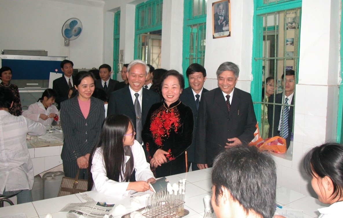 Ảnh 9. Đồng chí Nguyễn Thị Doan, Phó Chủ tịch nước CHXHCN Việt Nam tới thăm Phòng thí nghiệm, thực hành khoa Sinh học năm 2008