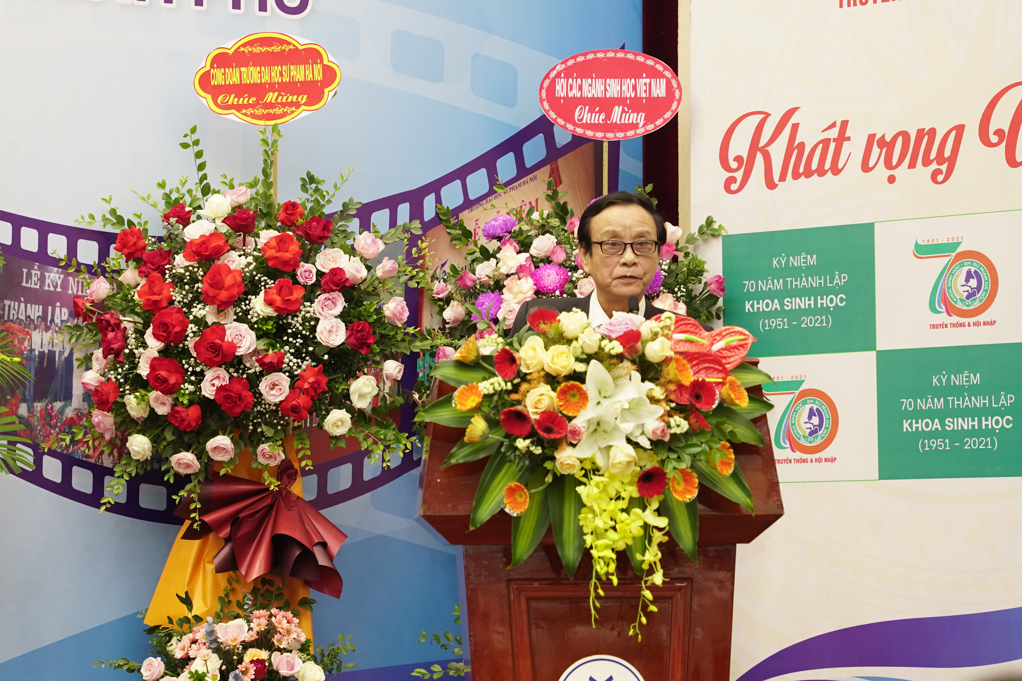 Một lần nữa với tư cách cá nhân và thay mặt cho các thế hệ thầy cô đã nghỉ hưu kính chúc các vị đại biểu, các thầy giáo, cô giáo, các bạn học viên cao học, NCS, sinh viên sức khỏe, hạnh phúc, thành công. Chúc cho buổi Lễ Kỉ niệm 70 năm Khoa Sinh học thành công tốt đẹp!