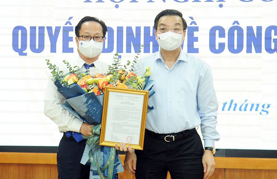 Ảnh 2. Chủ tịch UBND thành phố Hà Nội Chu Ngọc Anh trao Quyết định bổ nhiệm đồng chí Trần Thế Cương giữ chức Giám đốc Sở Giáo dục và Đào tạo thành phố Hà Nội ngày 6/8/2021 (nguồn: giaoducthoidai.vn)