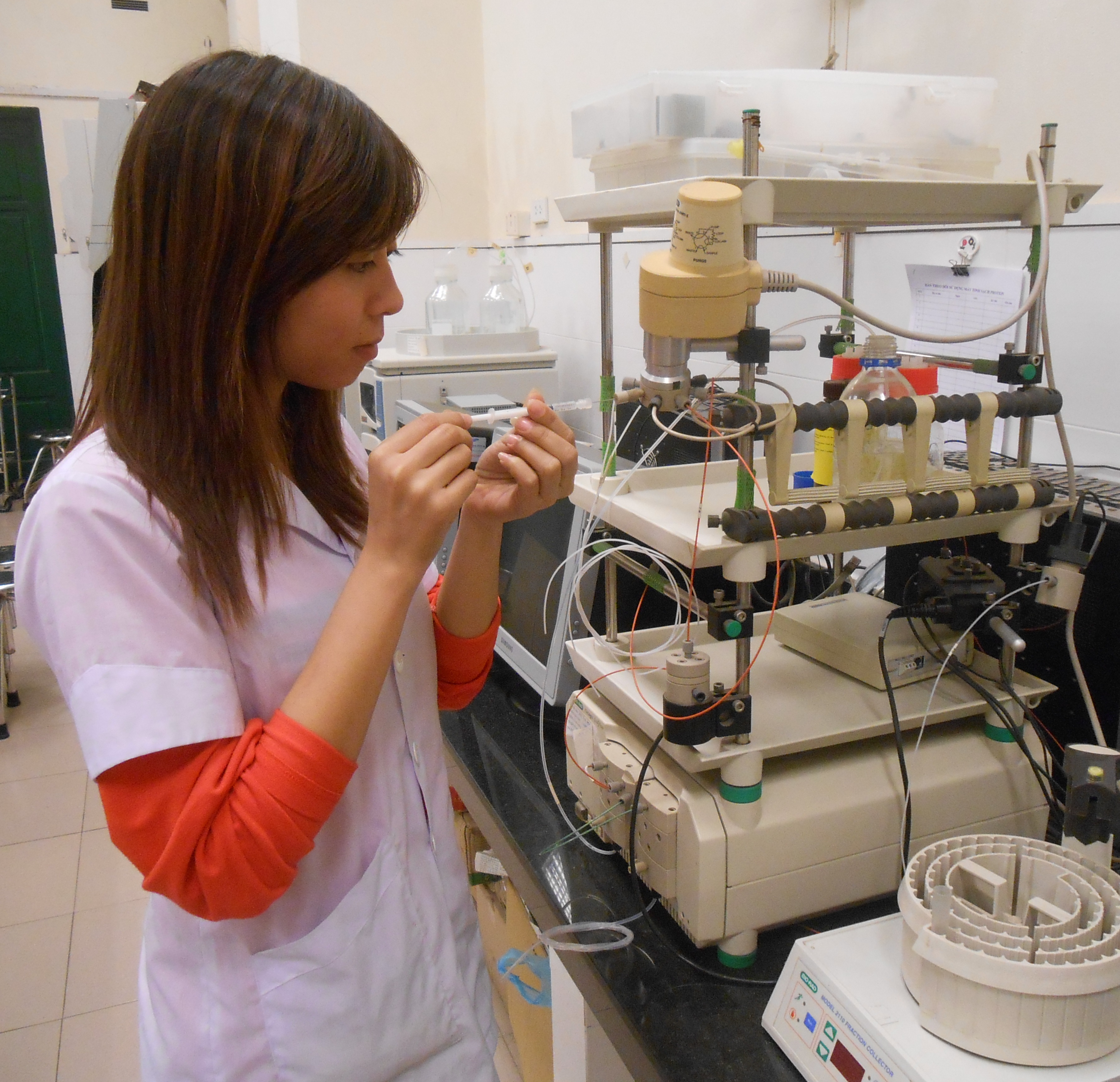 Ảnh 2. Sinh viên tiến hành thí nghiệm tại phòng thí nghiệm