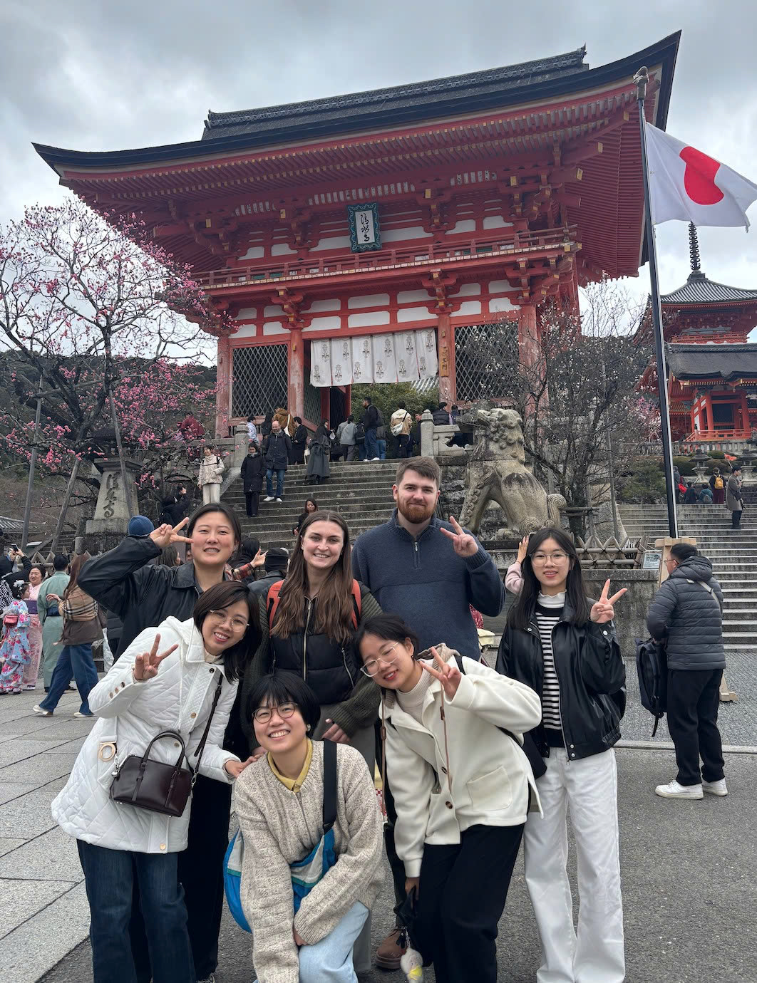 Sau đó, đoàn di chuyển tới cố đô Kyoto – một trong những trung tâm văn hóa và lịch sử nổi tiếng của Nhật Bản. Tại đây, các thành viên đã tham quan hai ngôi chùa nổi tiếng mang đậm kiến trúc và tinh thần Phật giáo Nhật Bản, đồng thời thưởng thức những món ăn truyền thống đặc trưng như mì Soba và bánh gạo tròn. Những trải nghiệm này giúp các thành viên hiểu thêm về văn hóa ẩm thực và đời sống của người dân Nhật Bản.