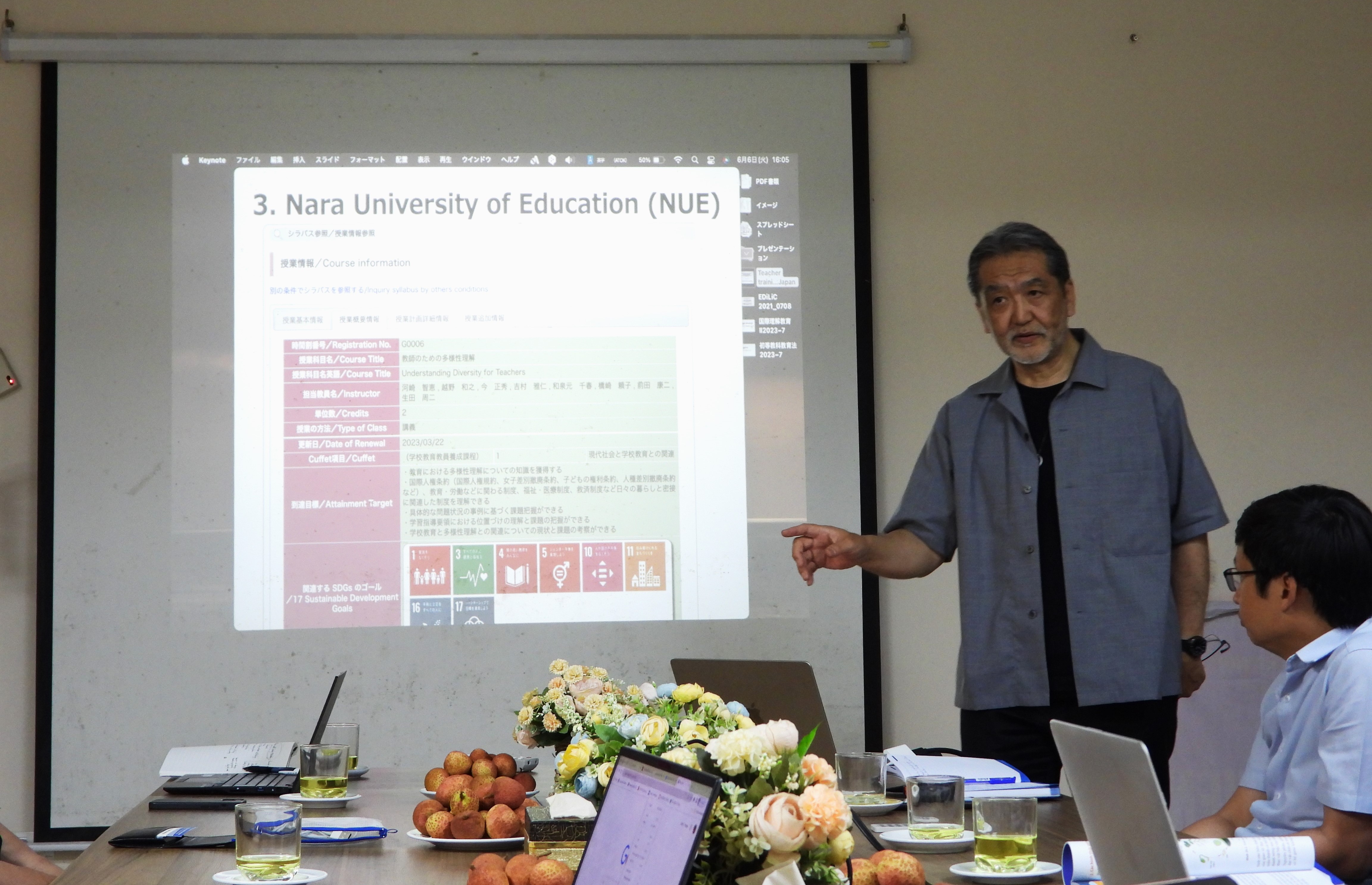 Ảnh 11. GS. Yoshimura trình bày giới thiệu về đào tạo giáo viên ở Nhật Bản và Trường Đại học Giáo dục Nara