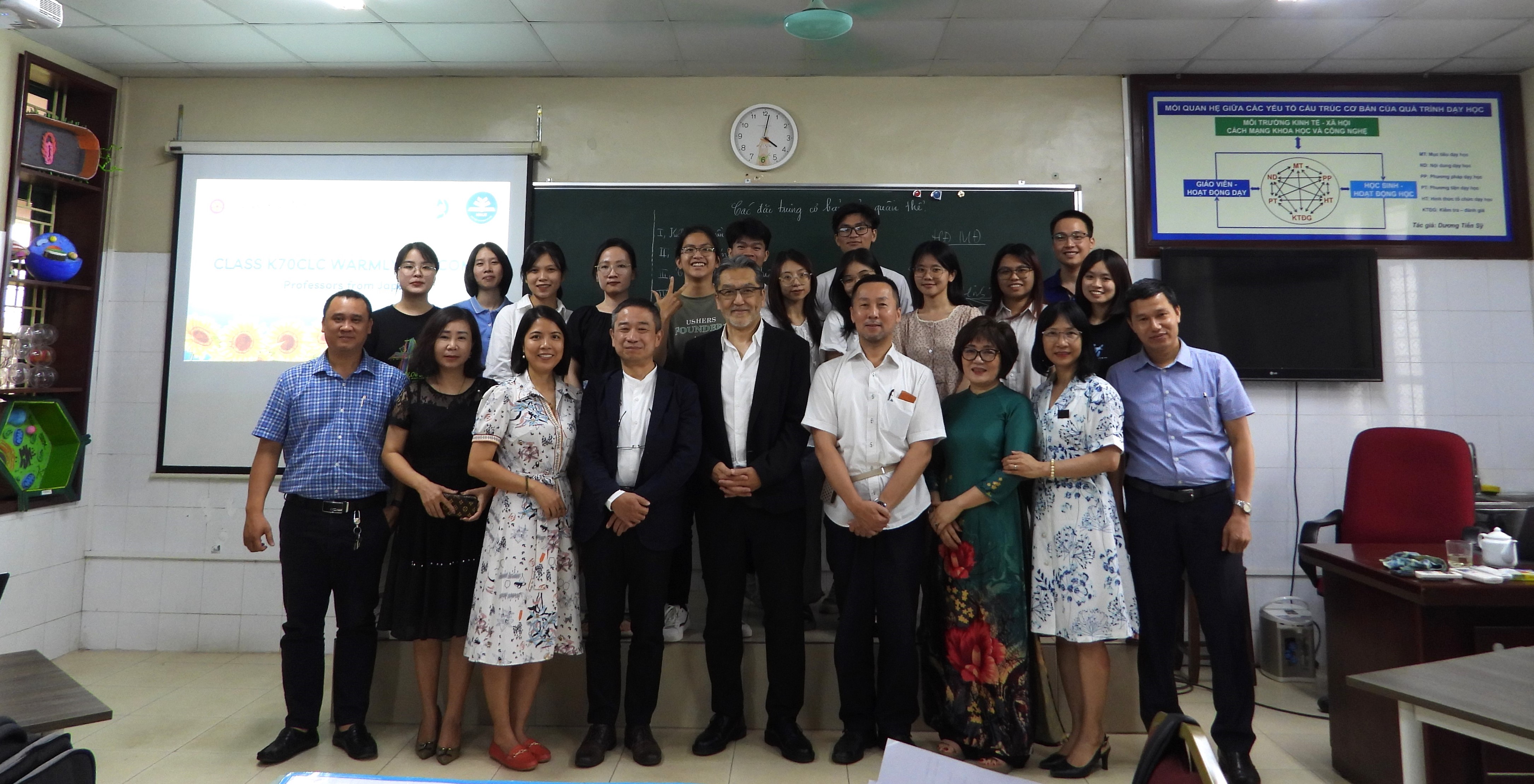 Ảnh 7. Đoàn Trường Đại học Giáo dục Nara chụp ảnh lưu niệm cùng lớp và các thầy, cô tham dự tiết học