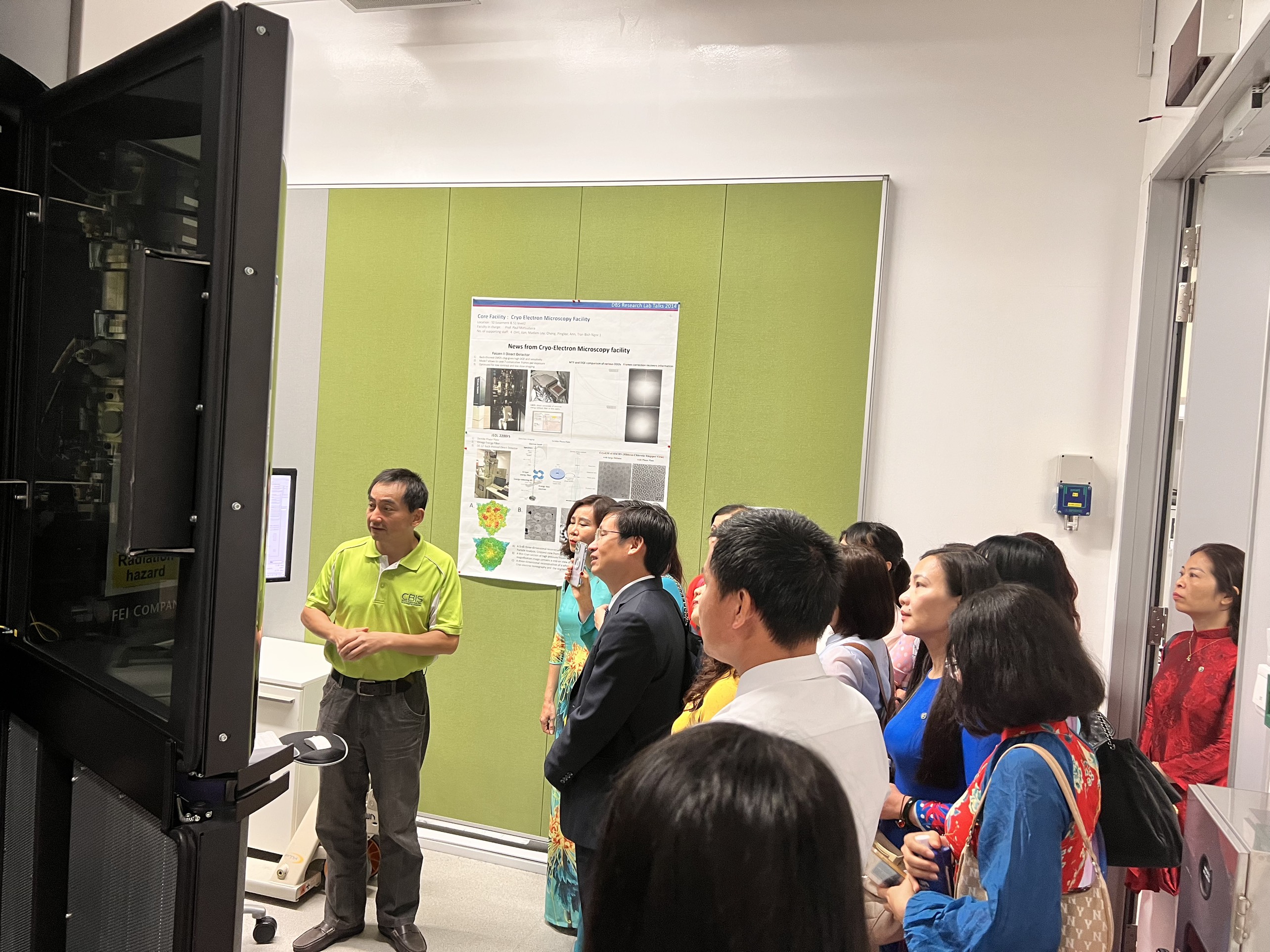 Ảnh 8. Đoàn thăm quan Phòng kính hiển vi điện tự nghiệm lạnh (Cryo-EM)
