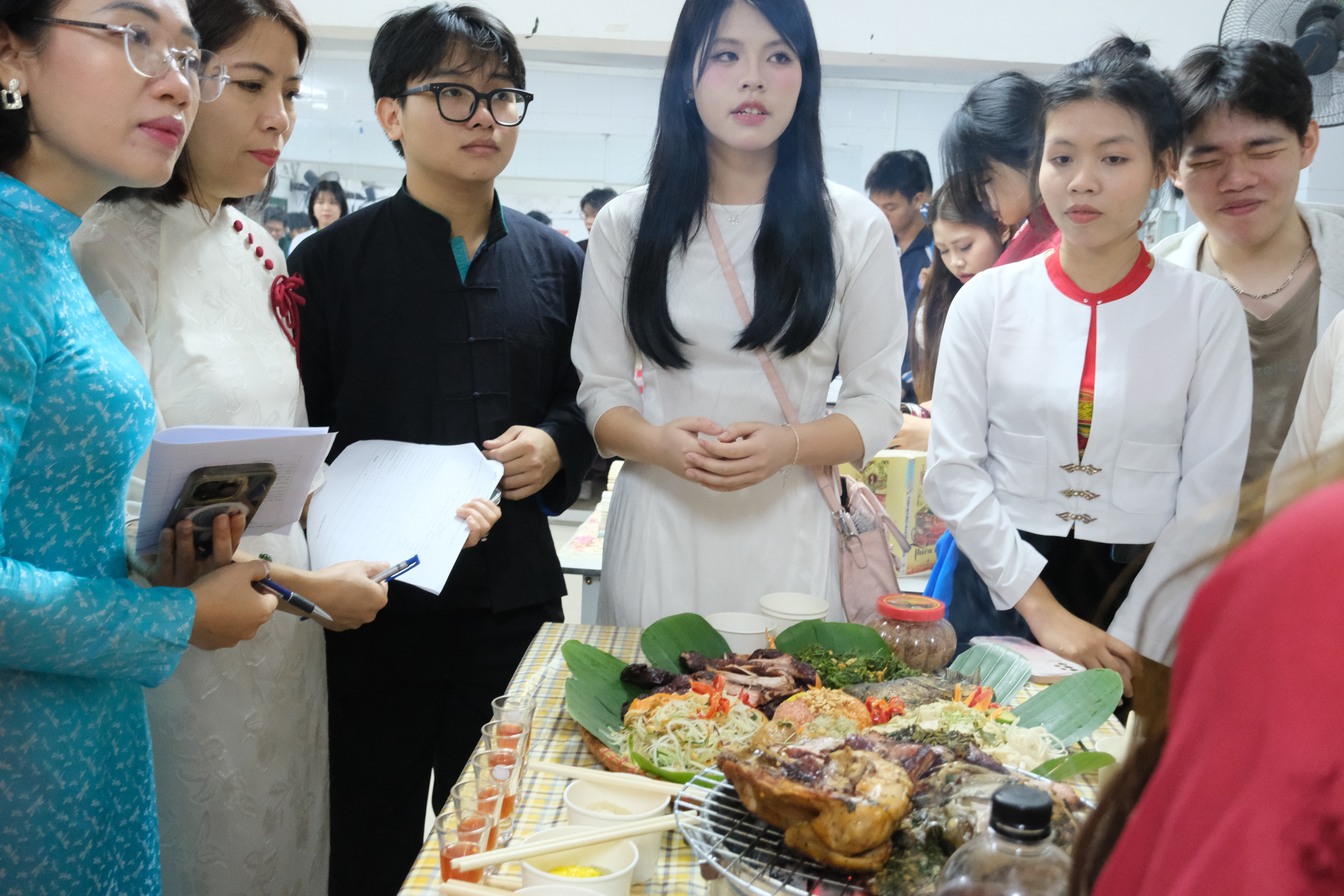 Trong phần chấm thi, Ban Giám khảo đã trực tiếp di chuyển đến từng gian hàng, không chỉ thưởng thức về hình thức và hương vị của món ăn mà còn lắng nghe các đội thi thuyết trình về ý nghĩa văn hóa của món ăn, nguồn gốc và giá trị truyền thống cũng như sự sáng tạo trong cách trình bày món ăn. Không khí chương trình thêm sôi nổi với những màn giao lưu văn hóa giữa các đội thi với nhau và với sinh viên tham dự. Song song với hoạt động chấm thi, phần bình chọn cho đội thi được yêu thích nhất cũng diễn ra rất sôi động.