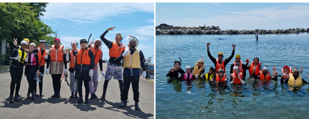 Ảnh 7. Sinh viên chuẩn bị cho hoạt động lặn quan sát sinh vật biển tại đảo Sado