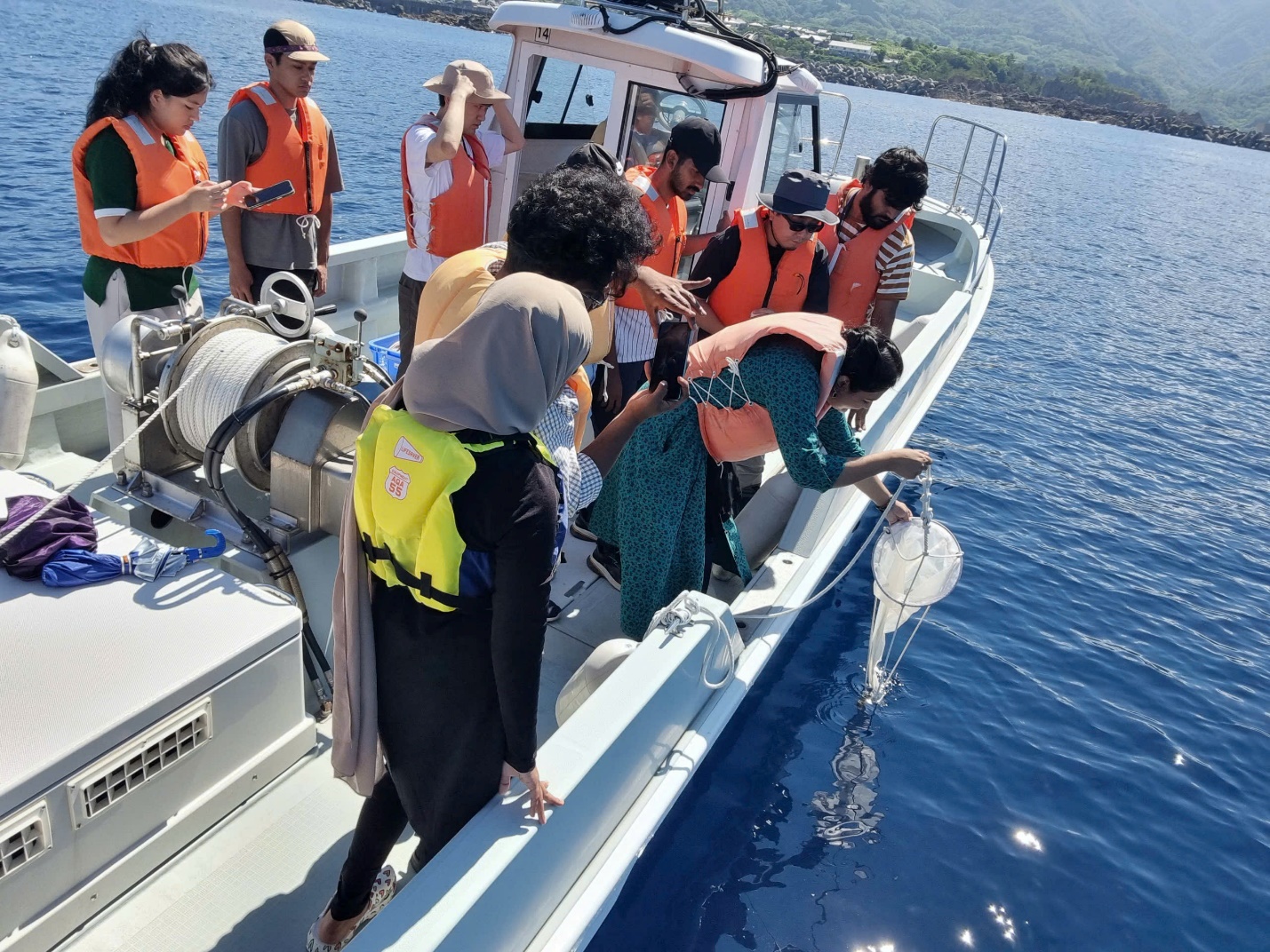 Ảnh 9. Đi thuyền ra ngoài biển để thực hành thu mẫu sinh vật phù du và sinh vật đáy