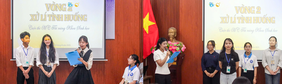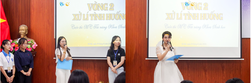 Cuộc thi “Bio Mic – MC Tài năng Khoa Sinh học 2025” không chỉ mang đến không khí sôi nổi và đầy cảm xúc, mà còn là hành trình để các thí sinh thể hiện bản lĩnh, sự tự tin và khả năng làm chủ sân khấu của mình. Mỗi phần thi là một thử thách riêng, giúp các bạn thể hiện rõ nét phong cách dẫn dắt, khả năng xử lý tình huống và kỹ năng truyền đạt cảm xúc đến khán giả. Với tinh thần đó, các vòng thi của “Bio Mic 2025” đã diễn ra đầy hấp dẫn, kịch tính và để lại nhiều ấn tượng đẹp trong lòng người xem.