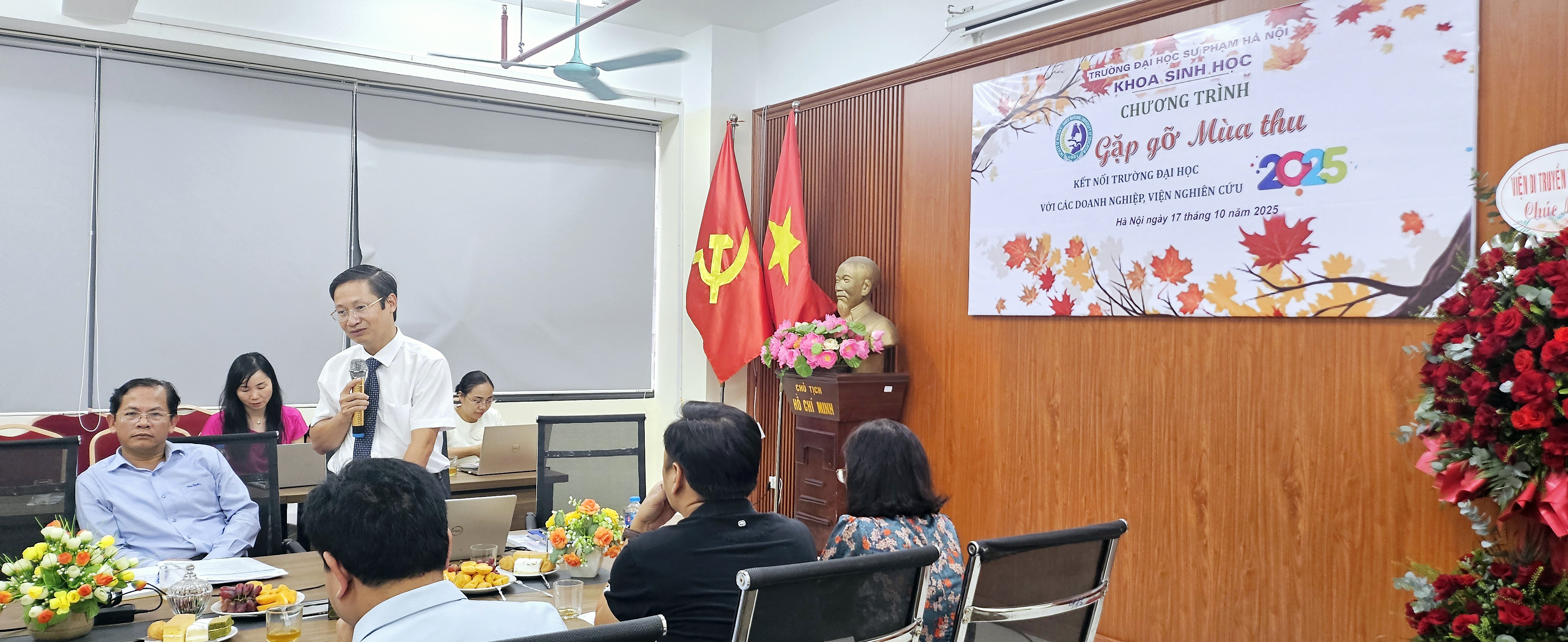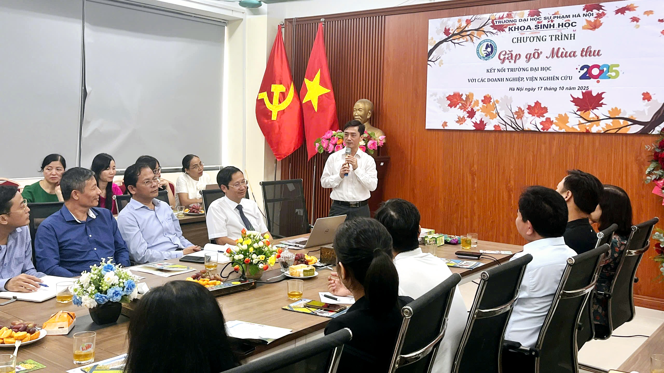 Kết thúc chương trình, PGS.TS. Nguyễn Lân Hùng Sơn gửi lời cảm ơn sâu sắc tới các Viện nghiên cứu, Doanh nghiệp và đại diện Nhà trường đã dành thời gian tham dự và chia sẻ. Chương trình “Gặp gỡ Mùa thu 2025 - Kết nối trường đại học với các doanh nghiệp, viện nghiên cứu” là dấu mốc quan trọng trong quá trình mở rộng hợp tác của Khoa Sinh học, Trường Đại học Sư phạm Hà Nội, góp phần thúc đẩy sự phát triển bền vững, gắn kết giữa đào tạo - nghiên cứu - ứng dụng, chuyển giao tiến bộ KHKT trong lĩnh vực khoa học sự sống.