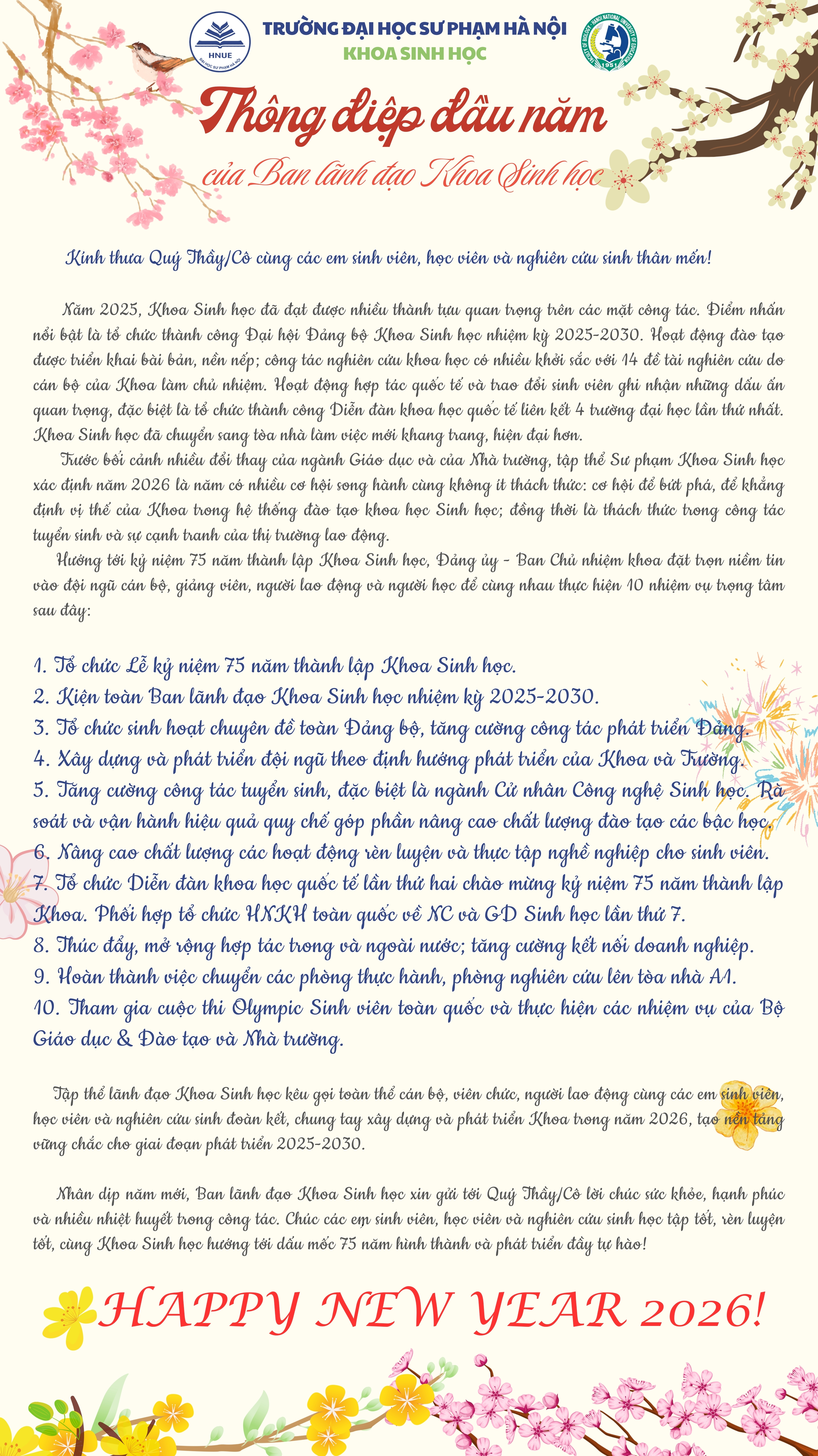 Người viết: Ban chủ nhiệm Khoa Sinh học