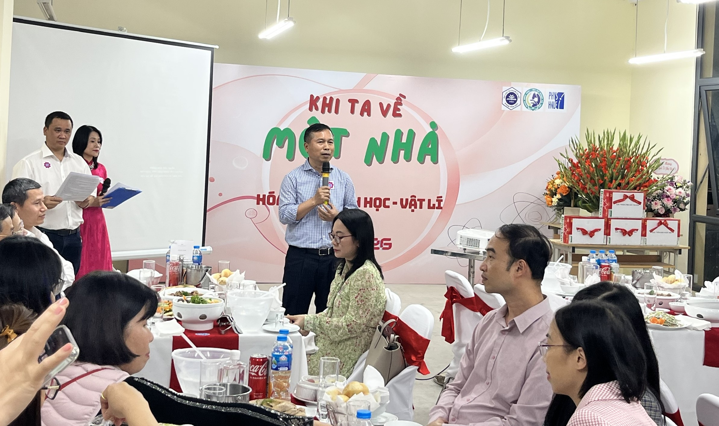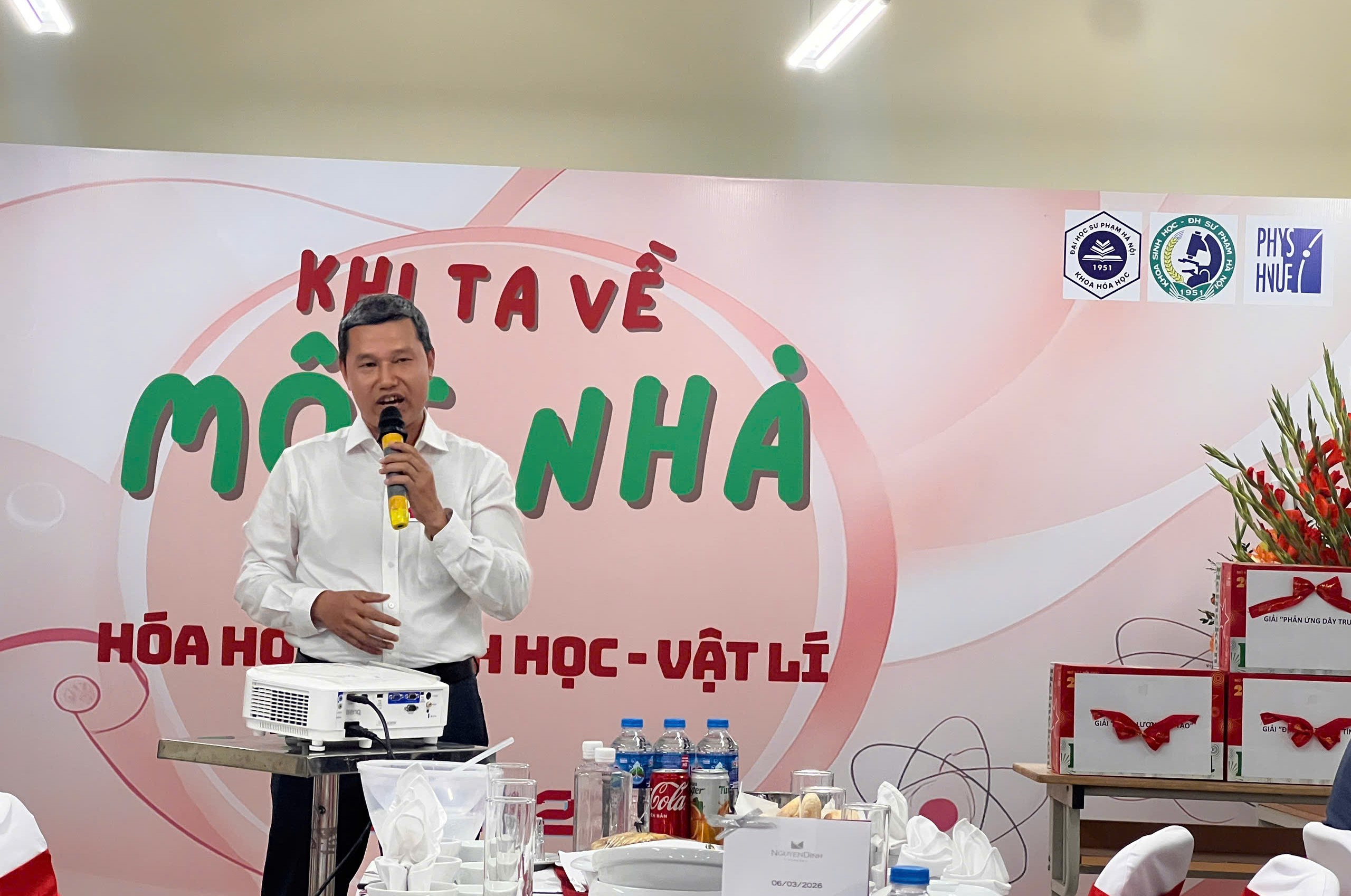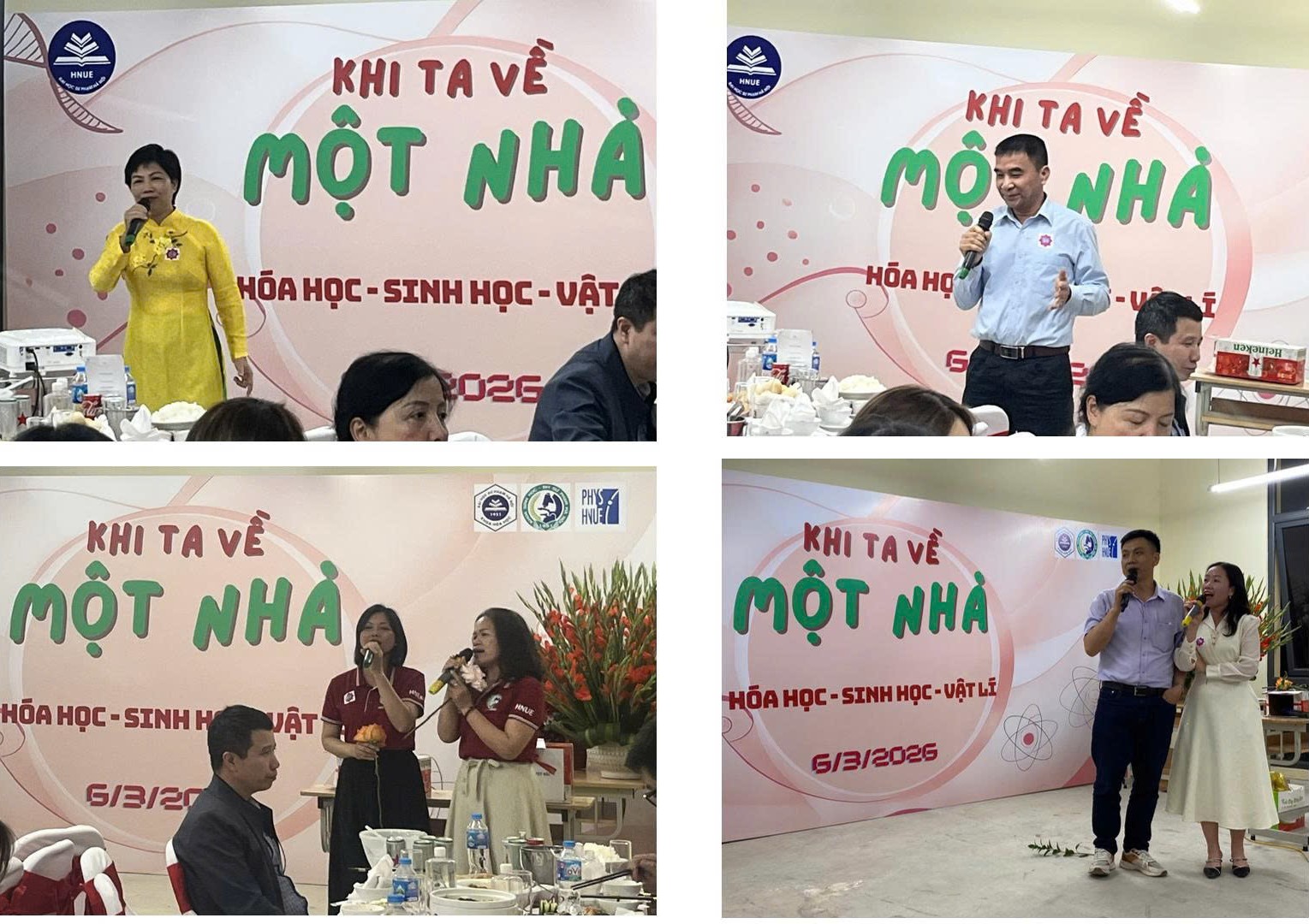 Tại chương trình, GS.TS Đặng Ngọc Quang – Trưởng khoa Hóa học đã phát biểu khai mạc, chia sẻ những cảm xúc và kỳ vọng về sự hội tụ của ba khoa trong không gian A1. Thầy nhấn mạnh rằng sự hội tụ này không chỉ là hội tụ về địa điểm làm việc mà còn là sự gặp gỡ của trí tuệ, truyền thống và khát vọng phát triển khoa học. Tiếp đó, PGS.TS Trần Đức Hậu – Trưởng khoa Sinh học đã có bài phát biểu chúc mừng nhân dịp Ngày Quốc tế Phụ nữ 8/3, gửi lời tri ân sâu sắc tới các nữ giảng viên của ba khoa. Trong môi trường khoa học tưởng như khô khan, chính các cô giáo đã mang đến sự mềm mại, tinh tế và nhân văn, góp phần tạo nên một môi trường học thuật vừa nghiêm cẩn vừa giàu cảm xúc.