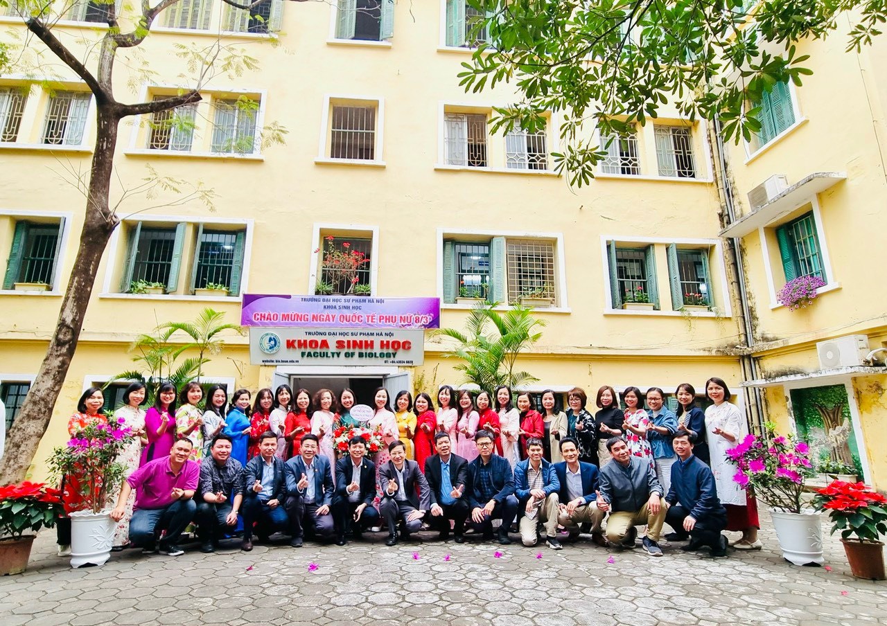 Hình 1: Tập thể khoa Sinh học chào mừng ngày 8.3