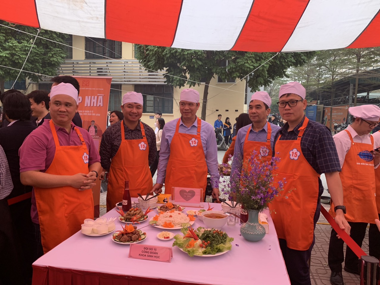 Nhiệt liệt chào mừng kỷ niệm 114 năm ngày Quốc tế phụ nữ mồng 8 tháng 3, 1984 năm khởi nghĩa Hai Bà Trưng và cuộc thi do Công đoàn Trường ĐHSPHN phát động “Khi đàn ông vào bếp”, 5 thầy giáo khoa Sinh học gồm Thầy Hồng, Thầy Phương, Thầy Hoàn, Thầy Thành Trung và Thầy Hải ngay từ đầu giờ sáng đã sẵn sàng với tạp dề, mũ đầu bếp để chuẩn bị cho món “Bún chả từ tâm”. Sau 11 năm Trường ĐHSPHN mới tổ chức cuộc thi nấu ăn quy mô cấp Trường nên các Thầy ai cũng háo hức. Sau gần 30 phút miệt mài chuẩn bị phối trộn nguyên liệu, những chiếc nem đầu tiên đã được hoàn thiện dưới những đôi tay khéo léo của các Thầy. Lò than hồng rực khiến những miếng thịt nướng chảy mỡ xèo xèo, mùi thơm lan tỏa khắp không gian sân hội trường.