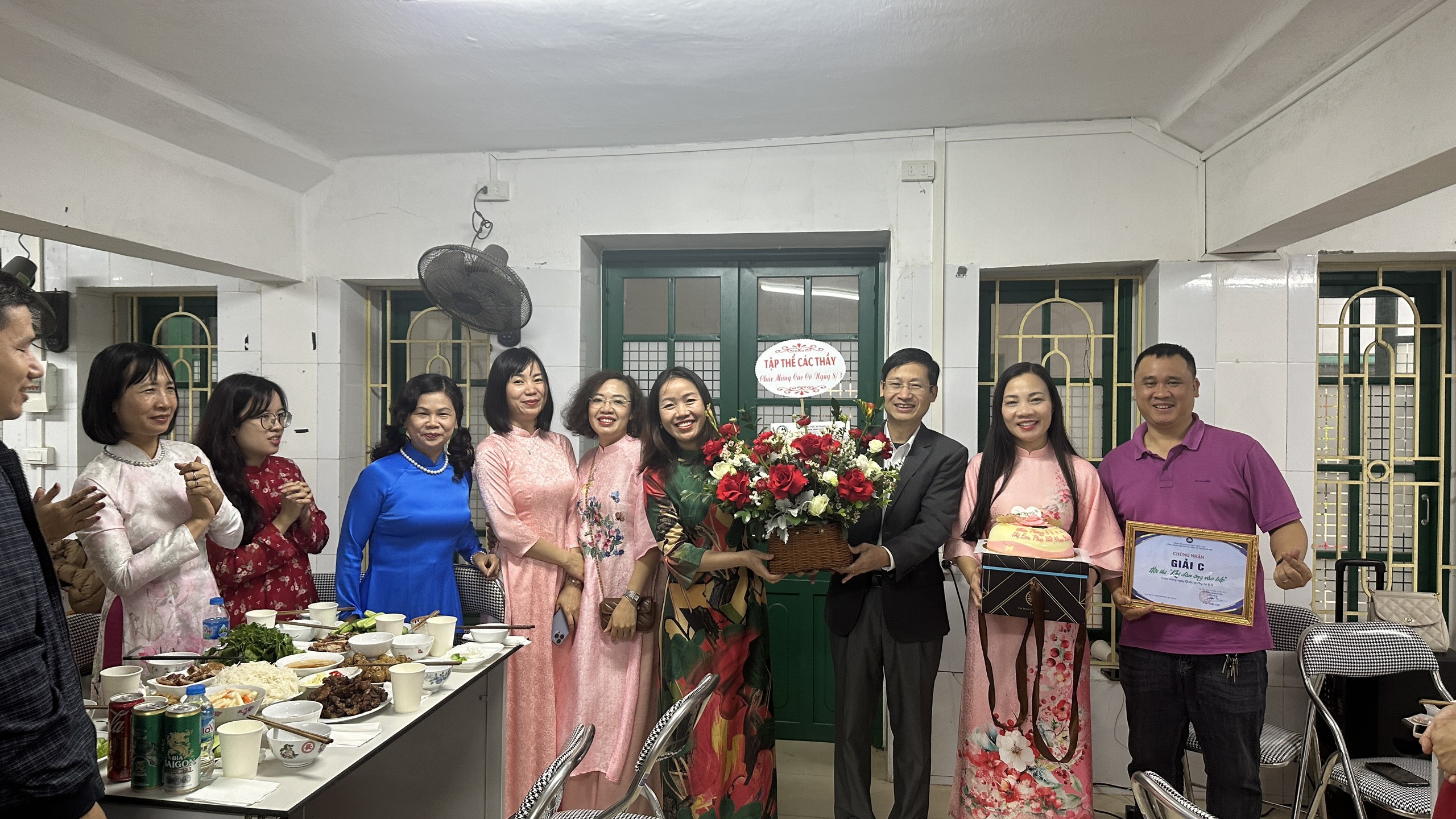 Chưa khi nào các Thầy lại cần vận dụng hết tốc lực của trí óc, sự nhanh nhẹn của đôi bàn tay để cho ra lò sản phẩm những miếng nem rán vàng ruộm, đều nhau tăm tắp, những viên chả nướng, thịt ba chỉ nâu vàng thật hấp dẫn. Các Thầy không chỉ vững tay phấn, mà còn rất chu đáo cẩn thận chuẩn bị nước chấm chuẩn vị: thơm của mắm, giấm chanh pha vừa tầm, thêm tí cay cay của tiêu với ớt. Rồi còn món dưa góp chua giòn sần sật và rau thơm, rau sống. Sự độc đáo của các Thầy giáo đầu bếp khoa Sinh học còn được thể hiện qua sự kết hợp của Chả-Nem với bún Mạch Tràng- sợi dây nối với truyền thống của vùng đất Cổ Loa- Hà Nội- loại bún được làm thủ công, có màu trắng ngà-dai nhờ ngâm ủ bột gạo và không dùng bất cứ chất bảo quản nào. Và tất cả các nguyên liệu này, dưới sự chế biến tài tình của các Thầy giáo đã làm nên những món ăn ngon- tươi-sạch- đúng chất “BÚN CHẢ TỪ TÂM” như những lời chúc thân thương, ngọt ngào các Thầy dành tặng các Cô. Niềm vui nhất của các Thầy là khi bất kì ai thưởng thức món ăn Bún-Nem-Chả “make in Khoa Sinh học” cũng đều tấm tắc khen ngon.