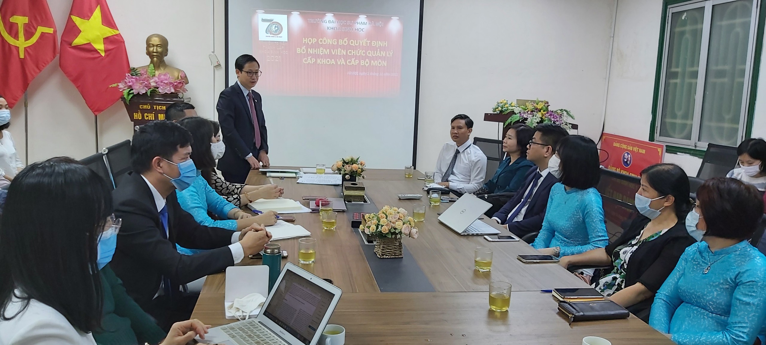 Cũng tại cuộc họp, PGS.TS. Nguyễn Lân Hùng Sơn đã công bố các Quyết định bổ nhiệm lại và bổ nhiệm mới viên chức giữ chức vụ quản lý bộ môn nhiệm kỳ 2021 – 2026 gồm: