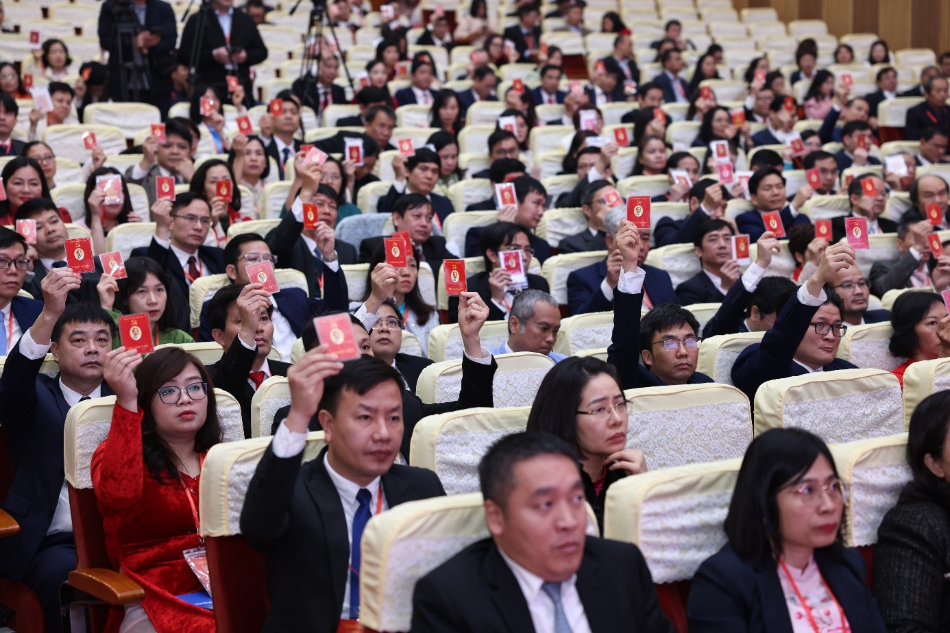 Ảnh 5. Đại biểu biểu quyết những nội dung quan trọng tại Đại hội