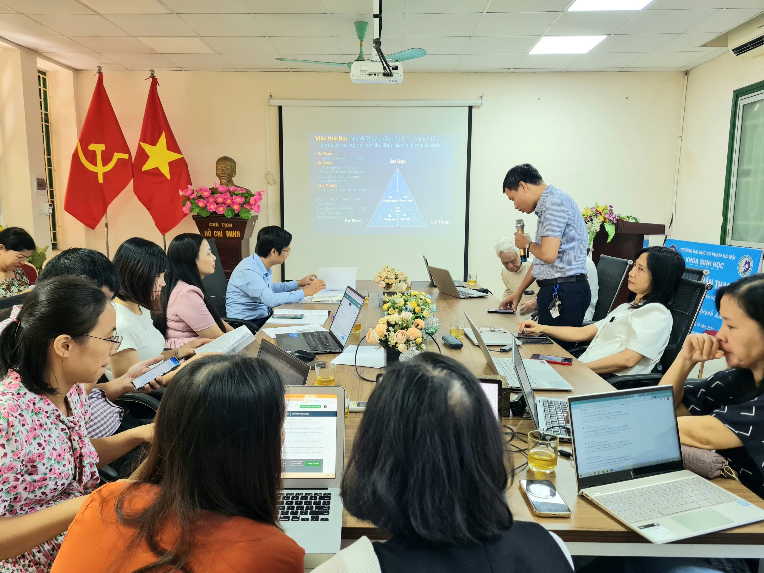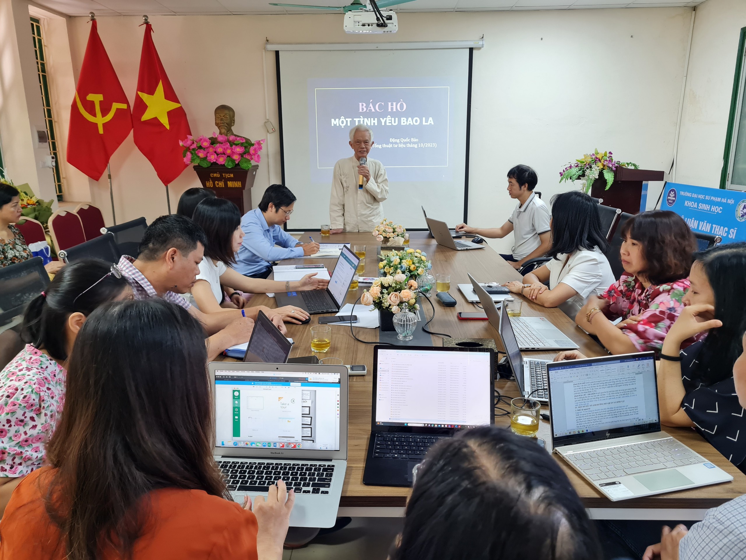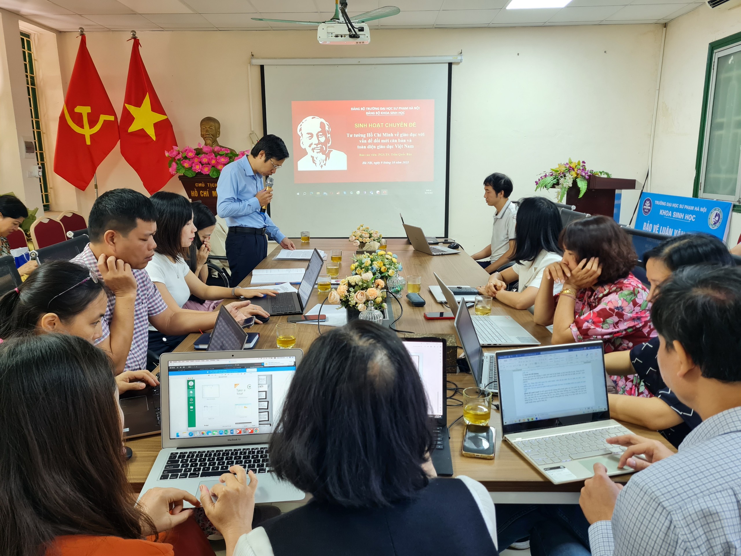 PGS.TS. Đặng Quốc Bảo - Nguyên Hiệu trưởng Trường Cán bộ Quản lý Giáo dục và Đào tạo (nay là Học viện Quản lý Giáo dục), một nhà khoa học đã nhiều năm nghiên cứu tư tưởng Hồ Chí Minh về giáo dục đã tới tham dự và làm báo cáo viên của buổi sinh hoạt chuyên đề. Đây là hoạt động của Đảng bộ khoa Sinh học nhằm triển khai thực hiện Chương trình công tác năm 2023, thực hiện Kết luận số 01-KL/TW ngày 18/5/2021 của Bộ Chính trị về “tiếp tục thực hiện Chỉ thị số 05- CT/TW ngày 15/5/2016 của Bộ Chính trị khóa XII “Về đẩy mạnh học tập và làm theo tư tưởng, đạo đức, phong cách Hồ Chí Minh”. Đồng thời nhằm đẩy mạnh hơn nữa việc triển khai thực hiện có hiệu quả Nghị quyết số 29-NQ/TW ngày 4/11/2013 của Hội nghị BCH Trung ương Đảng lần thứ 8 khóa XI về Đổi mới căn bản, toàn diện giáo dục và đào tạo, đáp ứng nhu cầu công nghiệp hóa, hiện đại hóa trong điều kiện kinh tế thị trường định hướng xã hội chủ nghĩa và hội nhập quốc tế.