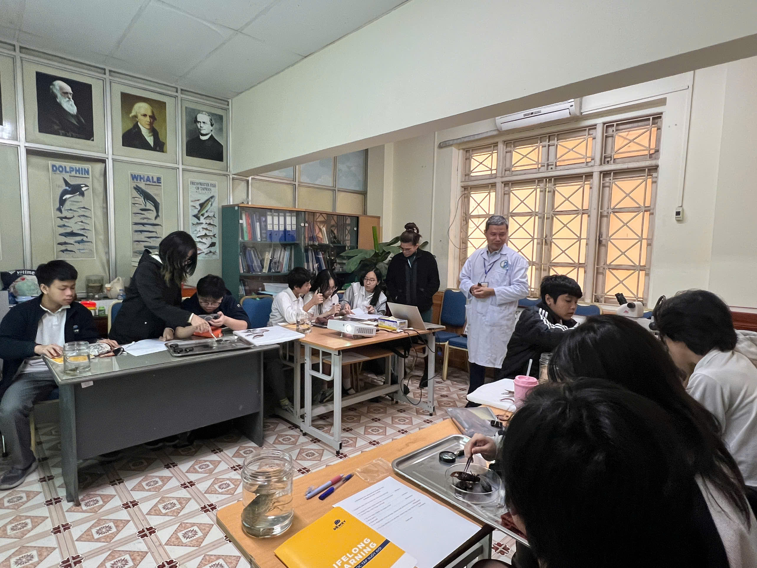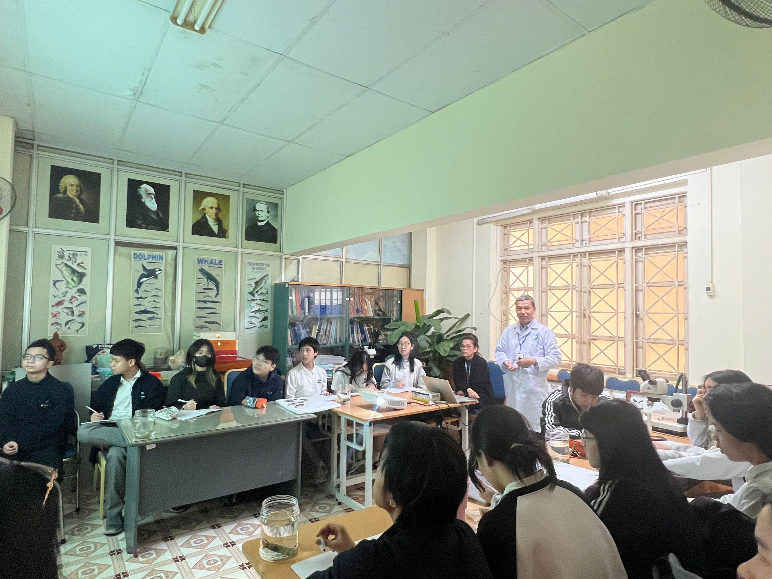Phần cuối của buổi trải nghiệm là tham quan bộ sưu tập mẫu vật tại bảo tàng dưới sự hướng dẫn của ThS. Trần Nam Hải. Bảo tàng Sinh học hiện đang lưu giữ nhiều mẫu vật động vật quý hiếm của Việt Nam, đặc biệt là bộ sưu tập các loài chim và thú từ nhiều hệ sinh thái khác nhau trên cả nước. Cán bộ bảo tàng đã giới thiệu chi tiết về đặc điểm cấu tạo, hoạt động sống, và các thông tin nổi bật của từng mẫu vật tiêu biểu. Học sinh thể hiện sự thích thú và tò mò qua việc đặt nhiều câu hỏi, thể hiện sự hiểu biết và tình yêu với thế giới động vật.