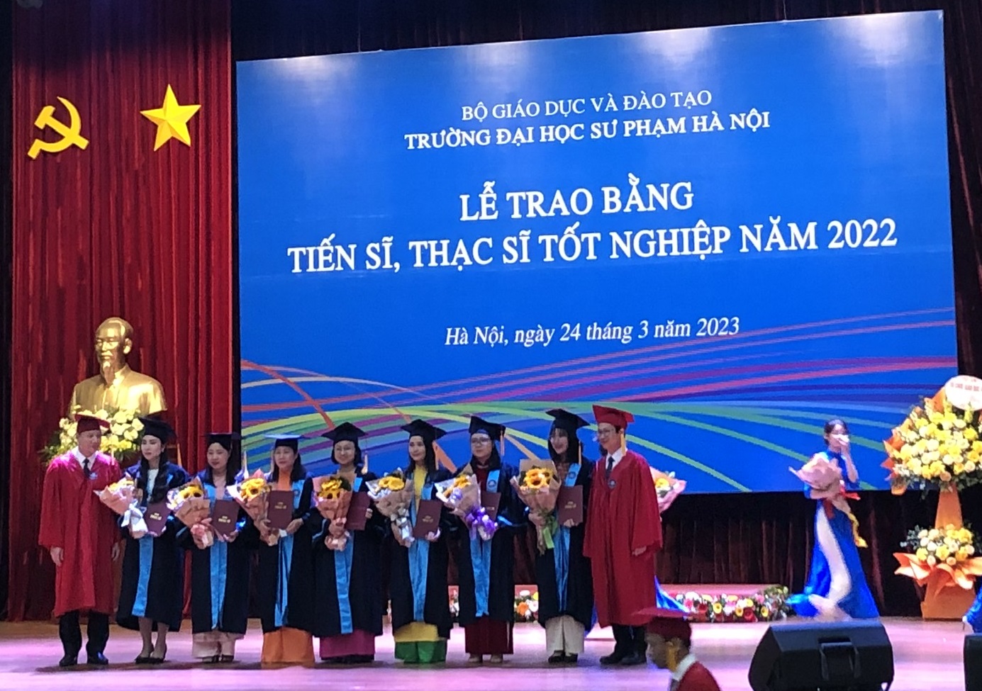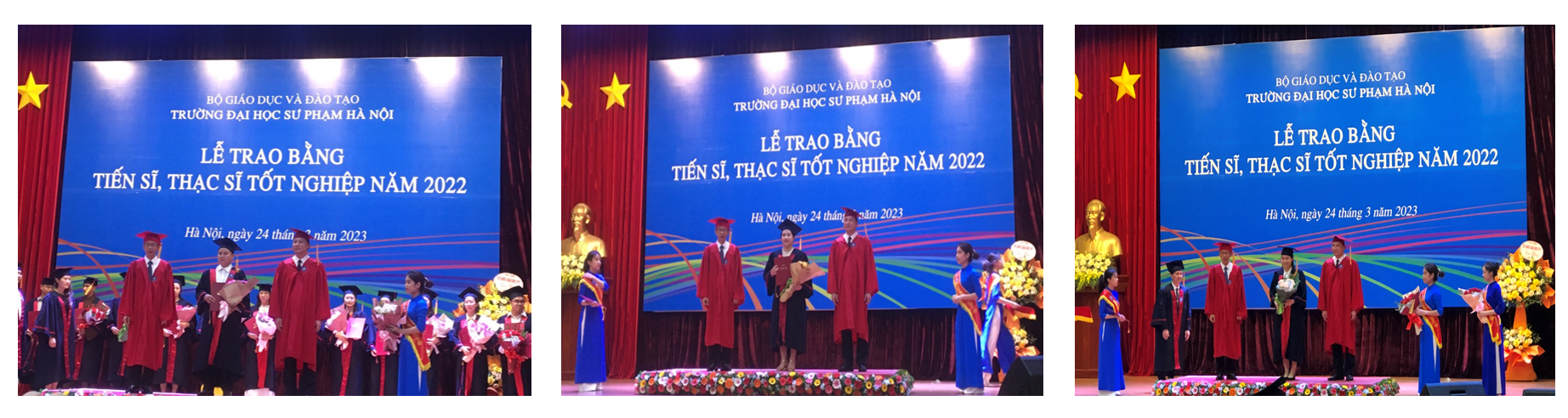 Năm nay, Khoa Sinh học có 03 tiến sĩ (02 tiến sĩ chuyên ngành (CN) Động vật học, 01 tiến sĩ CN Vi sinh vật học) và 20 thạc sĩ (06 ThS CN Động vật học, 09 ThS CN LL và PPDH bộ môn Sinh học, 03 ThS CN Sinh học thực nghiệm và 02 ThS CN Vi sinh vật học) vinh dự được nhận bằng. Đại điện cho các tân tiến sĩ, thạc sĩ của Khoa, TS. Hà Trà My và ThS. Nguyễn Thị Thu Hoài đã gửi lời cảm ơn sâu sắc tới Trường ĐH Sư phạm Hà Nội, tới Khoa Sinh học - nơi đã luôn tạo điều kiện về mọi mặt để các bạn có một môi trường học tập, nghiên cứu tốt nhất, và đặc biệt gửi lời tri ân sâu sắc tới các thầy cô giáo, các cán bộ hướng dẫn khoa học, những người đã luôn tận tâm với nghề, luôn biết cách động viên và khuyến khích học trò và truyền cho họ tinh thần đam mê học hỏi và nghiên cứu.