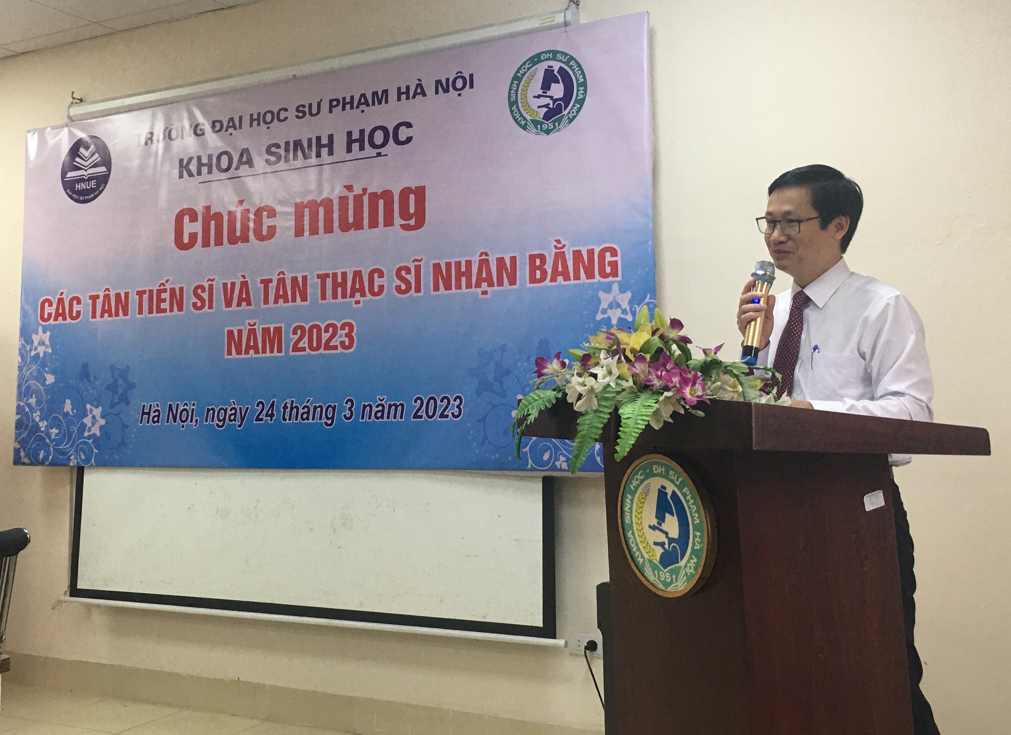 Buổi lễ chúc mừng diễn ra trong không khí ấm cúng, là dịp để Khoa ghi nhận những thành tích mà các tân tiến sĩ, thạc sĩ đã nỗ lực đạt được, cũng là cơ hội để người học bày tỏ tình cảm và tri ân các thầy cô. Như lời chia sẻ của thầy Trưởng Khoa, hy vọng rằng khoảng thời gian học tập và nghiên cứu tại Khoa Sinh học các bạn không chỉ có thêm hiểu biết về chuyên môn, mà đó còn là sự kết nối những giá trị tốt đẹp trân quý về bạn bè, đồng nghiệp, cộng đồng, kết nối trí tuệ và trải nghiệm thời học cao học, thời làm nghiên cứu sinh tươi đẹp.