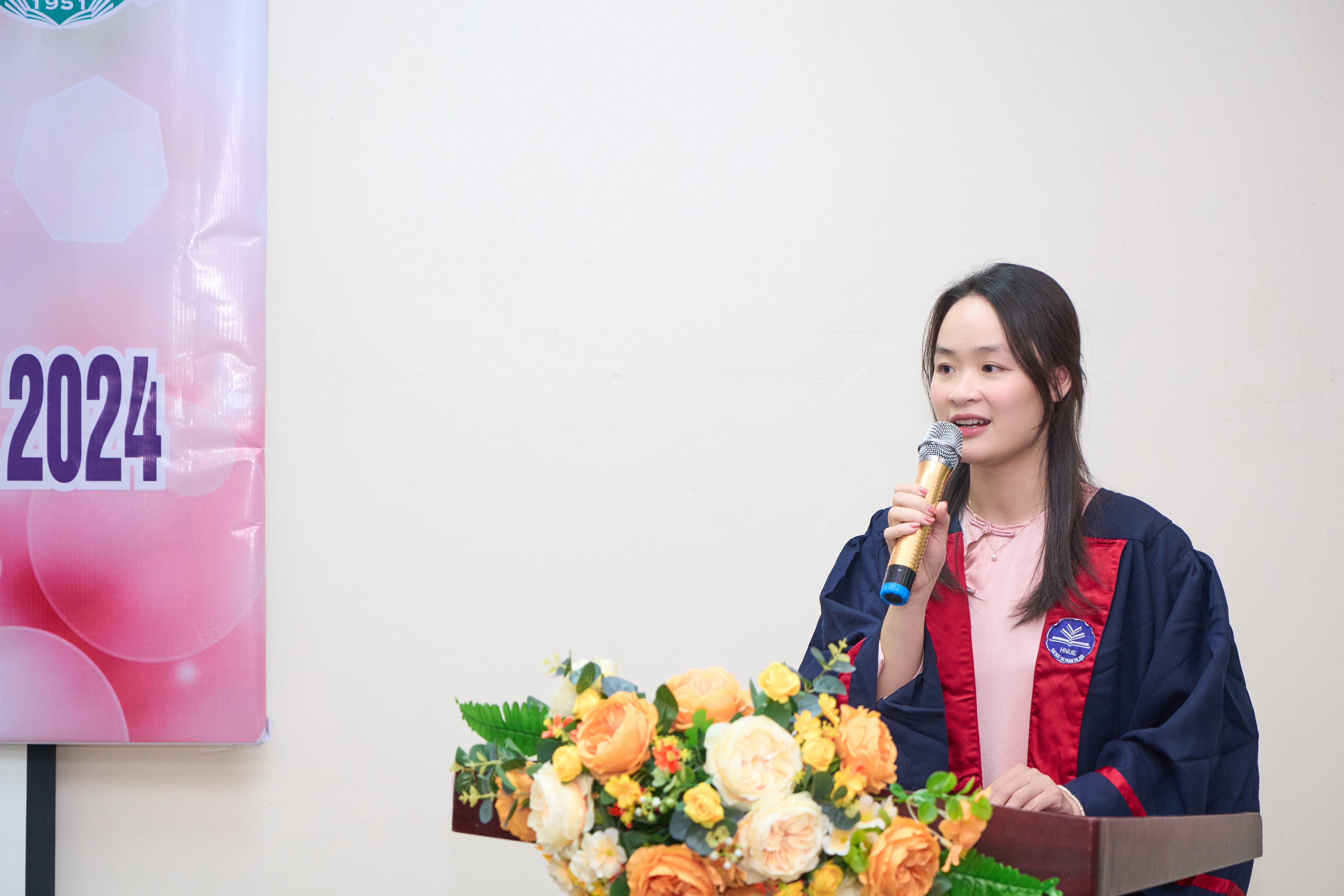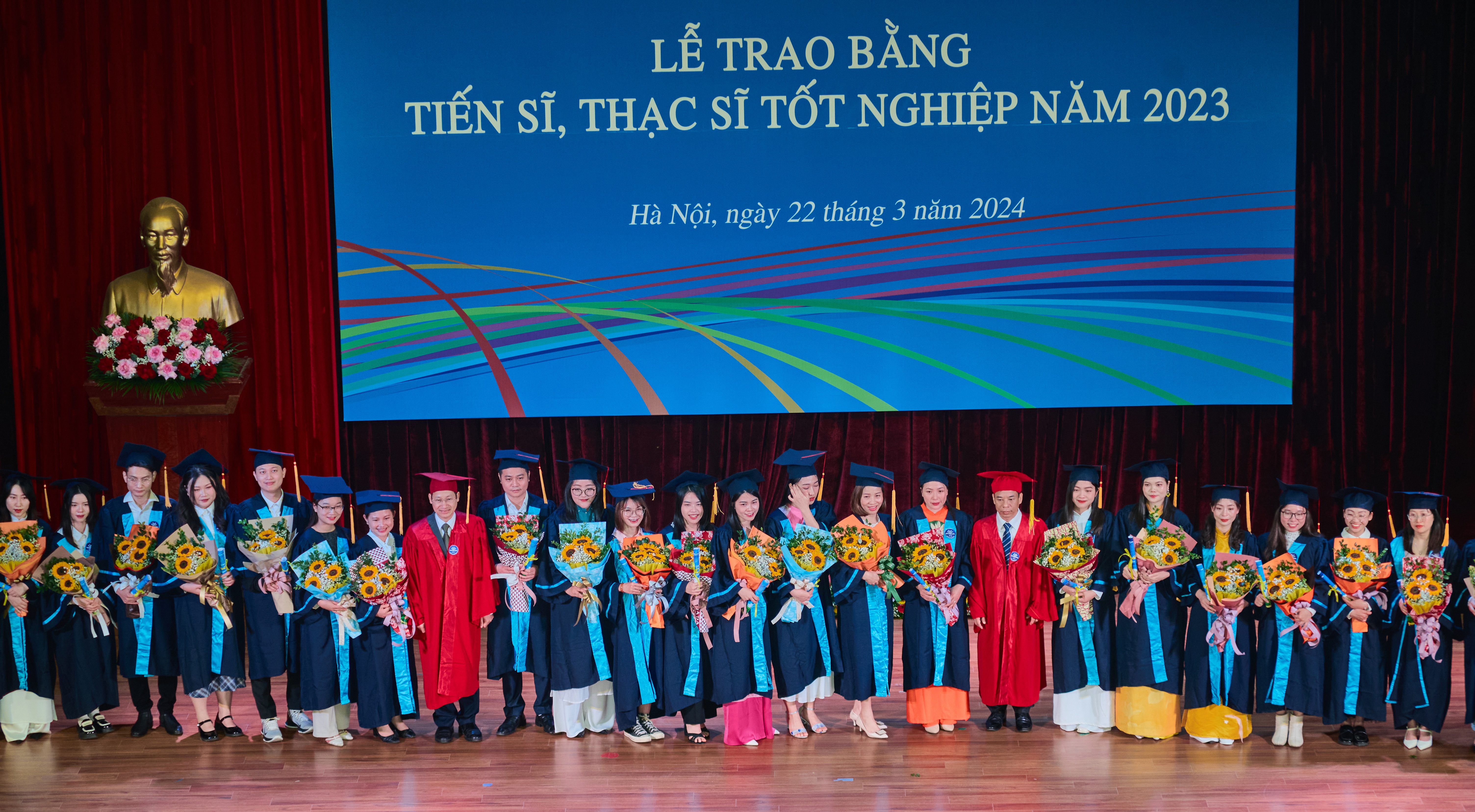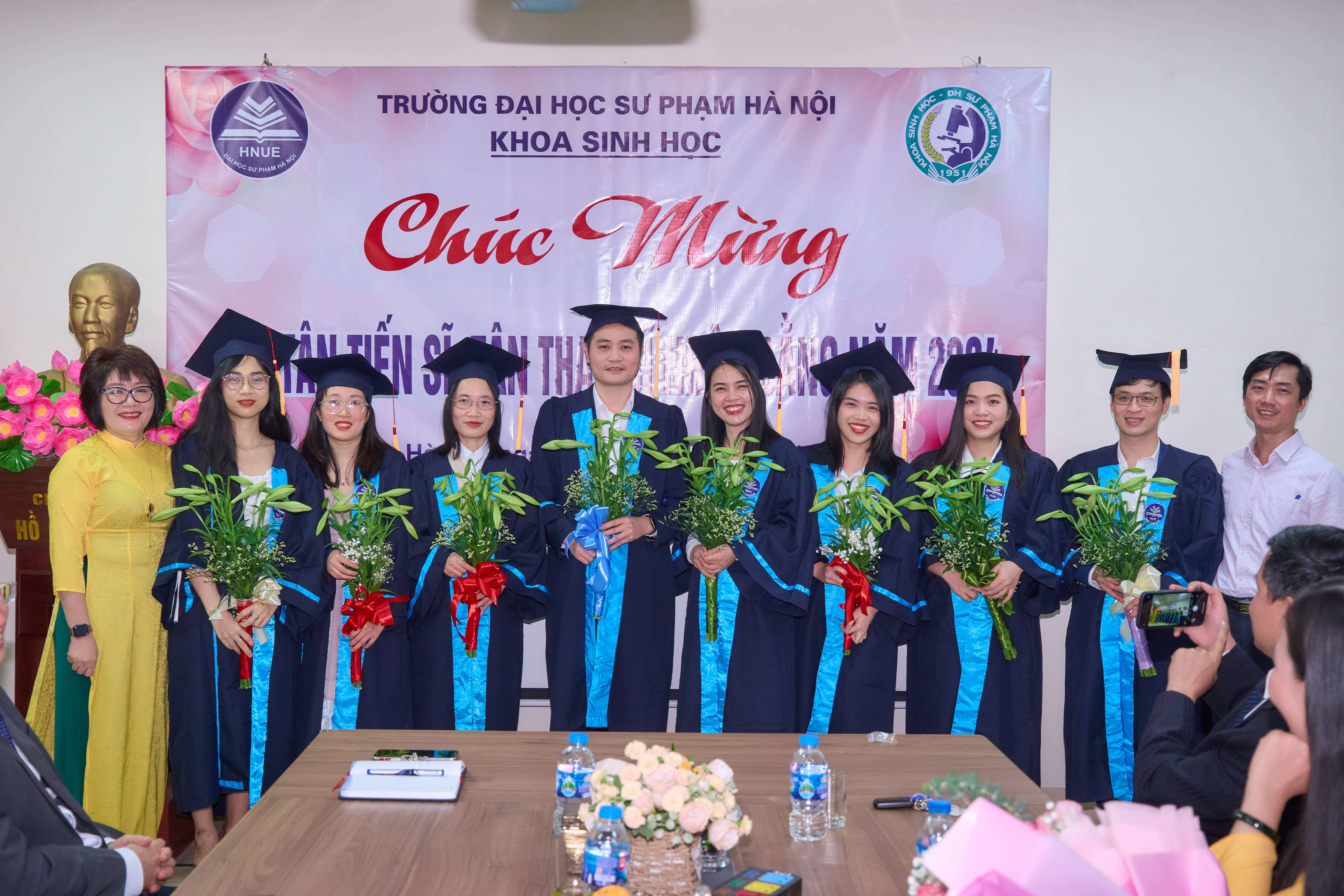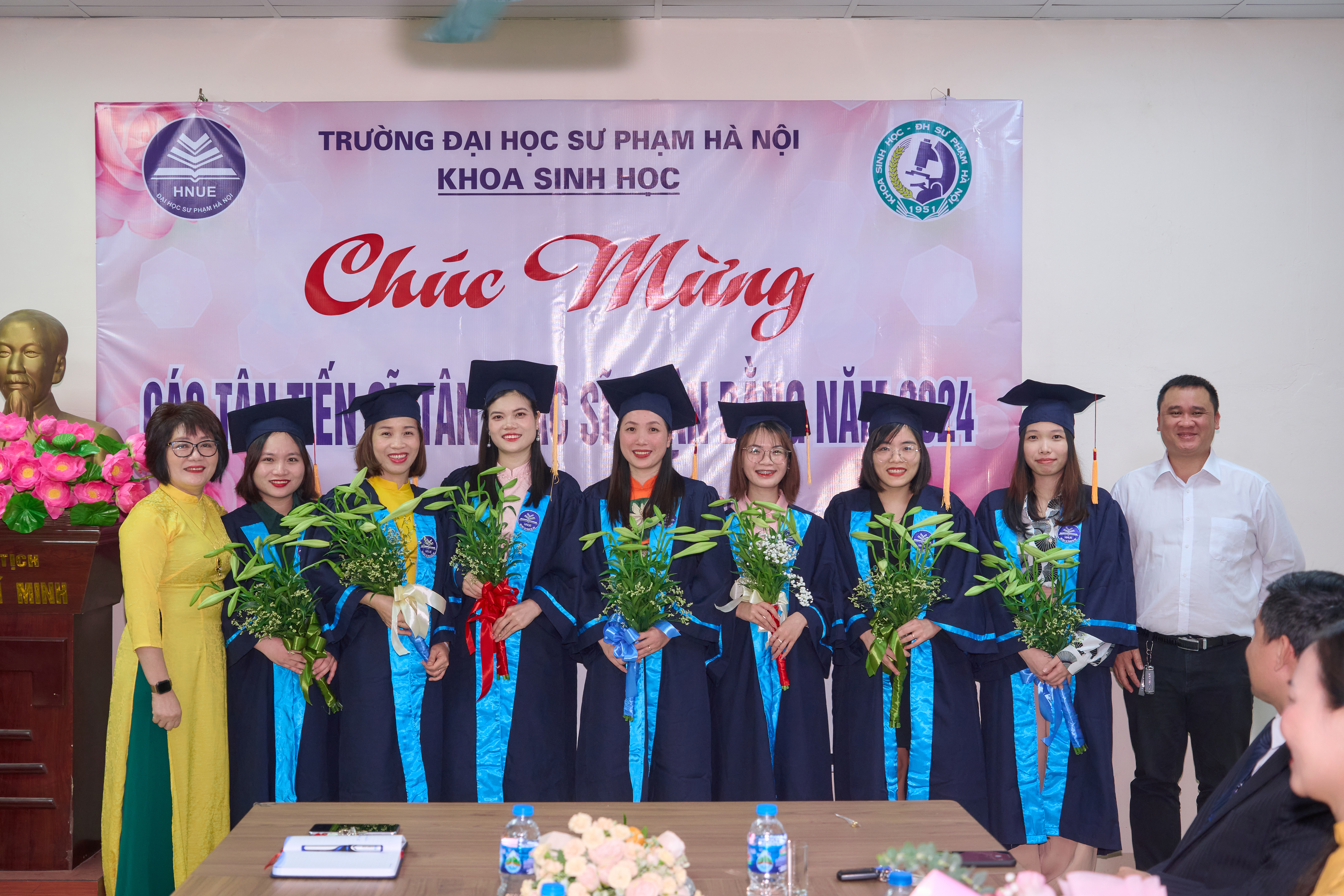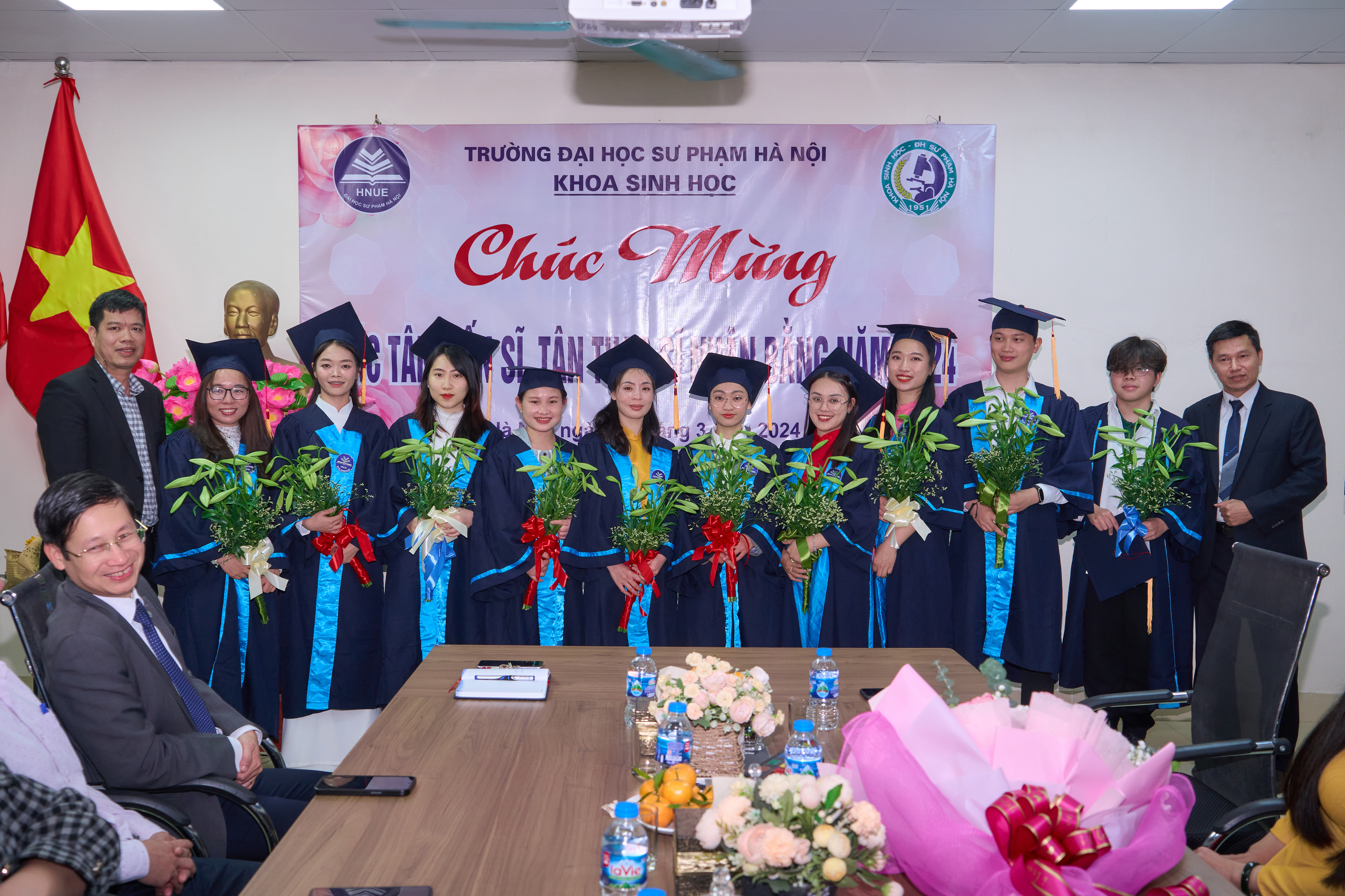 Ảnh 3. Khoa Sinh học gửi tặng những bó hoa tươi thắm chúc mừng đến các tân tiến sĩ, thạc sĩ