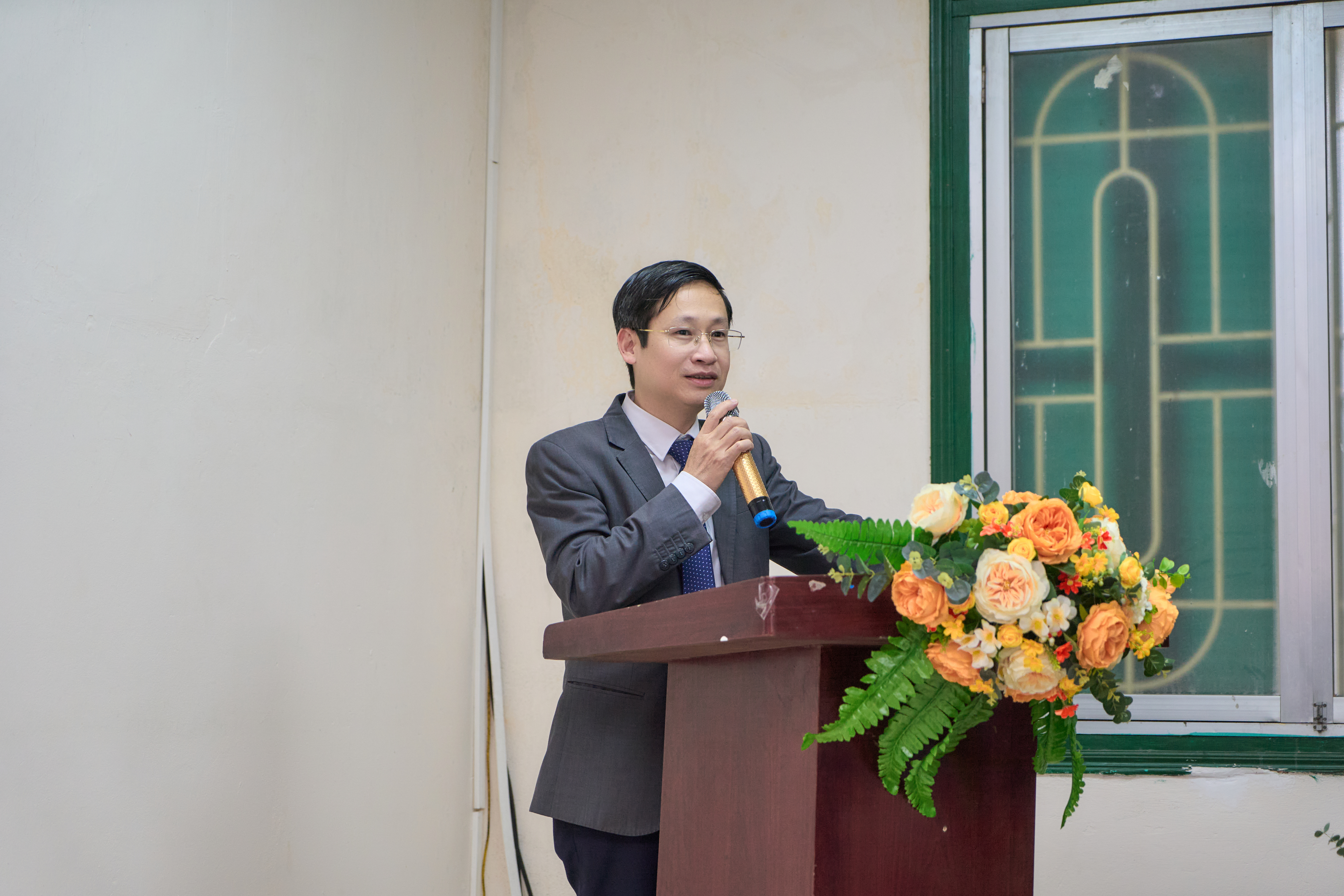 Ảnh 2. PGS.TS. Nguyễn Lân Hùng Sơn phát biểu tại buổi lễ chúc mừng tân tiến sĩ, thạc sĩ