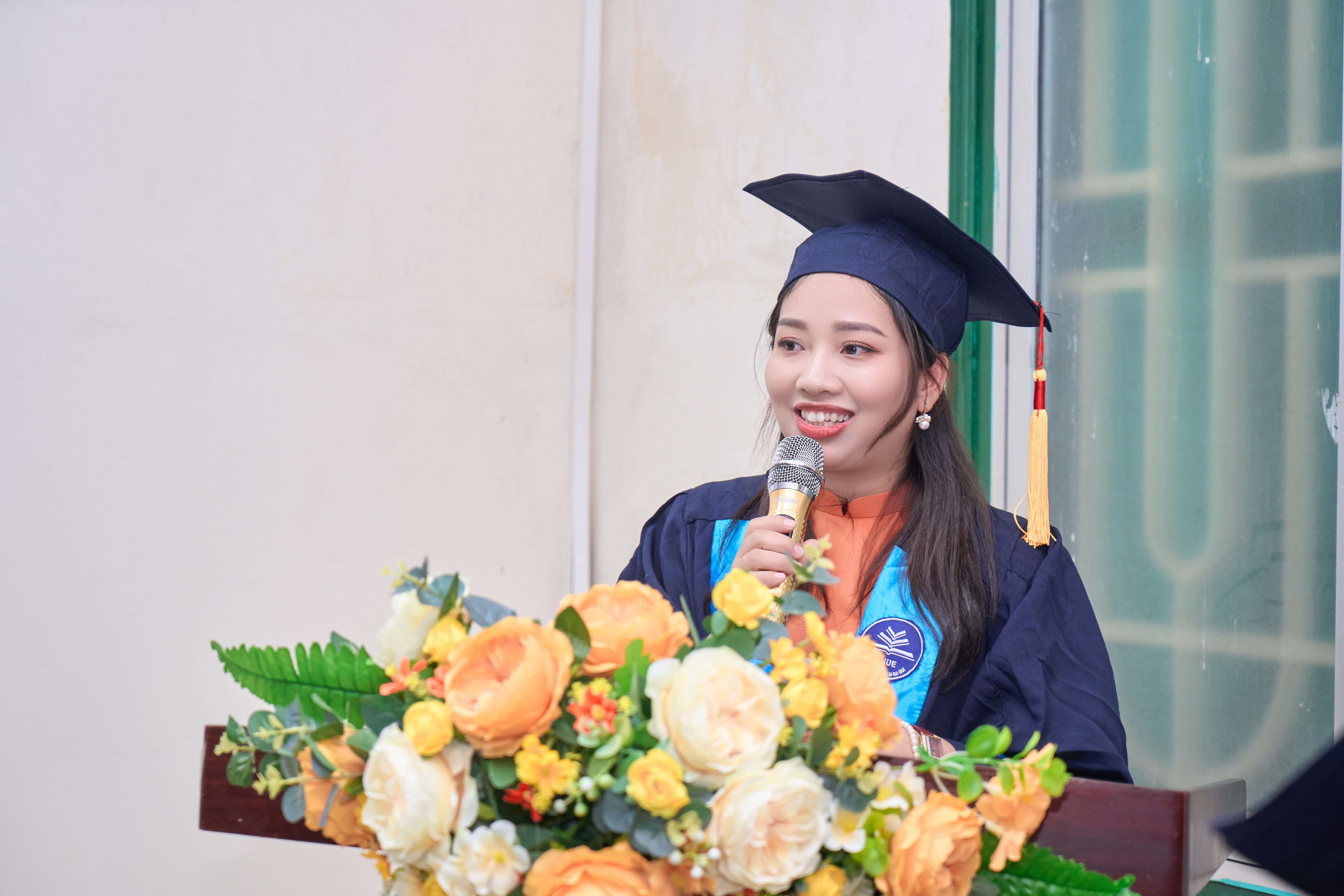 Ảnh 4. Đại diện tân tiến sĩ, thạc sĩ phát biểu tại buổi lễ