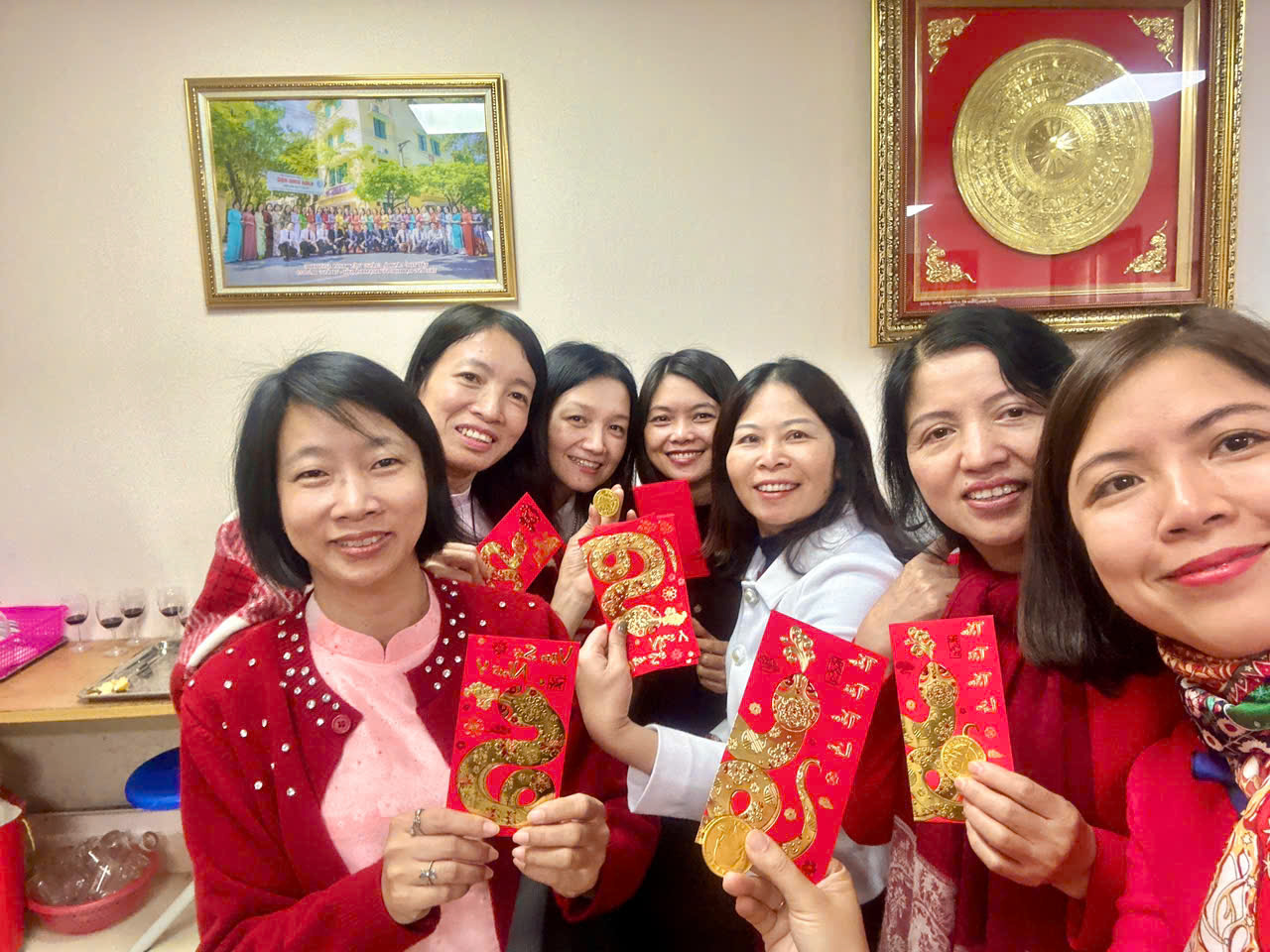 Ảnh 3. Các cán bộ nhận lì xì đầu xuân năm mới