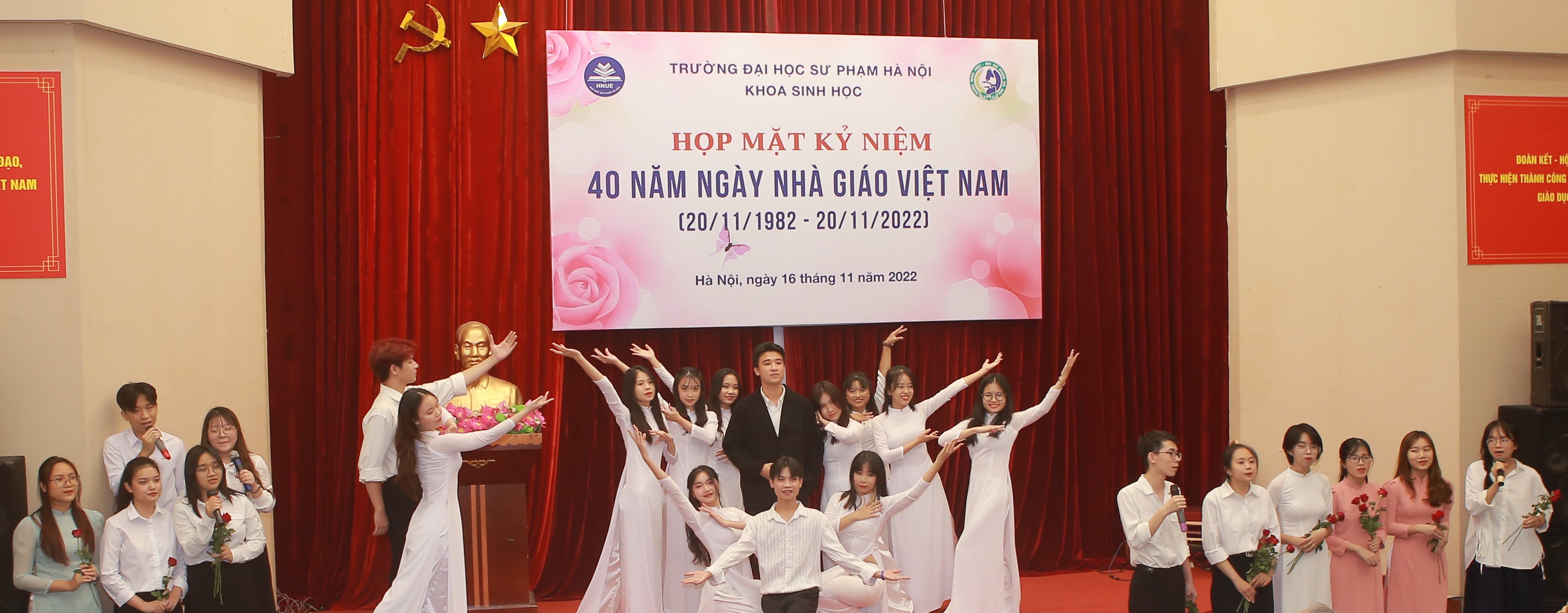 PGS.TS. Nguyễn Lân Hùng Sơn – Bí thư Đảng ủy Khoa, Trưởng khoa Sinh học thay mặt tập thể lãnh đạo khoa Sinh học gửi lời tri ân sâu sắc tới toàn thể Quý thầy cô nhân ngày truyền thống của ngành Giáo dục Việt Nam, ngày cả xã hội tôn vinh nghề giáo như sinh thời Chủ tịch Hồ Chí Minh đã nói: “Người thầy giáo tốt, người thầy giáo xứng đáng là người thầy vẻ vang nhất, dù tên tuổi không đăng trên báo, không được thưởng Huân chương. Song những người thầy giáo tốt là những người anh hùng vô danh…”. Ngược lại dòng lịch sử, PGS.TS. Nguyễn Lân Hùng Sơn nhắc đến những nỗ lực, cố gắng của các thế hệ thầy và trò của khoa Sinh học: “vượt qua khó khăn, nắm bắt cơ hội để tạo nên một môi trường giáo dục năng động vượt trội, nơi chào đón và tạo điều kiện phát triển của mọi tài năng; nơi cán bộ, giảng viên và các sinh viên, học viên là một khối thống nhất, ngay cả những biến động do đại dịch Covid 19, thầy và trò khoa Sinh học đã đoàn kết, đồng lòng, quyết tâm hoàn thành thắng lợi nhiệm vụ được giao, đó là giảng dạy - học tập và phòng chống dịch bệnh hiệu quả, vượt khó khăn, thử thách để đạt được nhiều kết quả đáng khích lệ như triển khai giảng dạy, học tập và hỗ trợ sinh viên trên các nền tảng trực tuyến, tổ chức các hội thảo và cuộc thi trực tuyến. Với đội ngũ cán bộ hiện tại chỉ có 46 cán bộ, làm việc tại 7 bộ môn, 1 bảo tàng sinh vật, vườn thực nghiệm và văn phòng khoa. Hiện tại, khoa Sinh học có 36 giảng viên, 9 giáo viên thực hành, 3 chuyên viên. Năm 2021 khoa có thêm 2 thầy cô được phong học hàm Phó giáo sư, vì vậy, hiện tại đội ngũ cán bộ của khoa có 1 Giáo sư, 15 Phó Giáo sư, 18 Tiến sĩ. Năm 2022, khoa Sinh học vui mừng khi tuyển sinh được 193 sinh viên khóa 72 và 26 học viên cao học khóa 32 và duy trì đào tạo 4 hệ ở bậc đại học như cử nhân sư phạm, cử nhân sư phạm chất lượng cao, cử nhân sinh học và cử nhân sư phạm dạy sinh học bằng tiếng Anh. Khoa cũng đề ra dự kiến sẽ mở thêm mã ngành Cử nhân công nghệ sinh học”.
