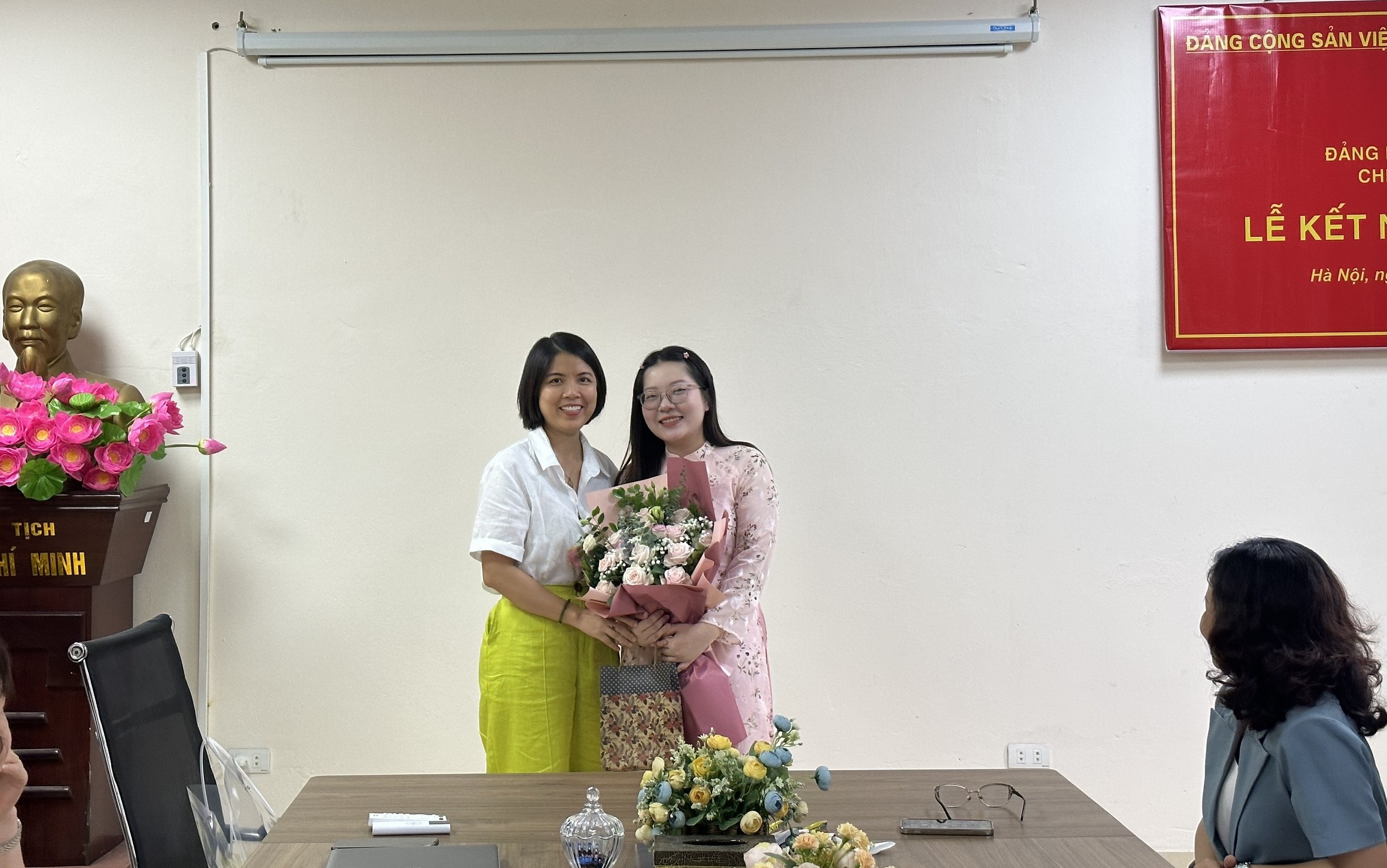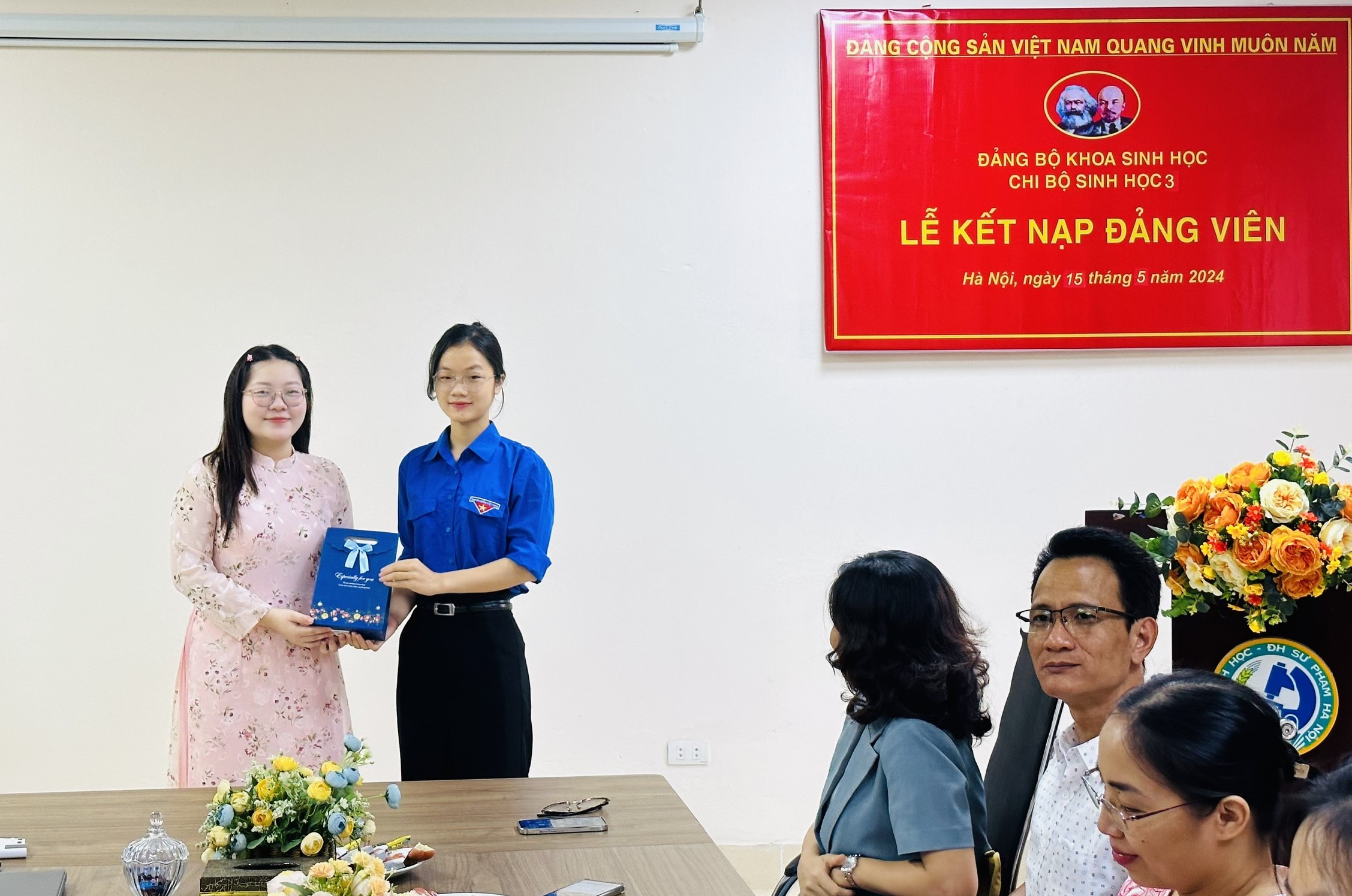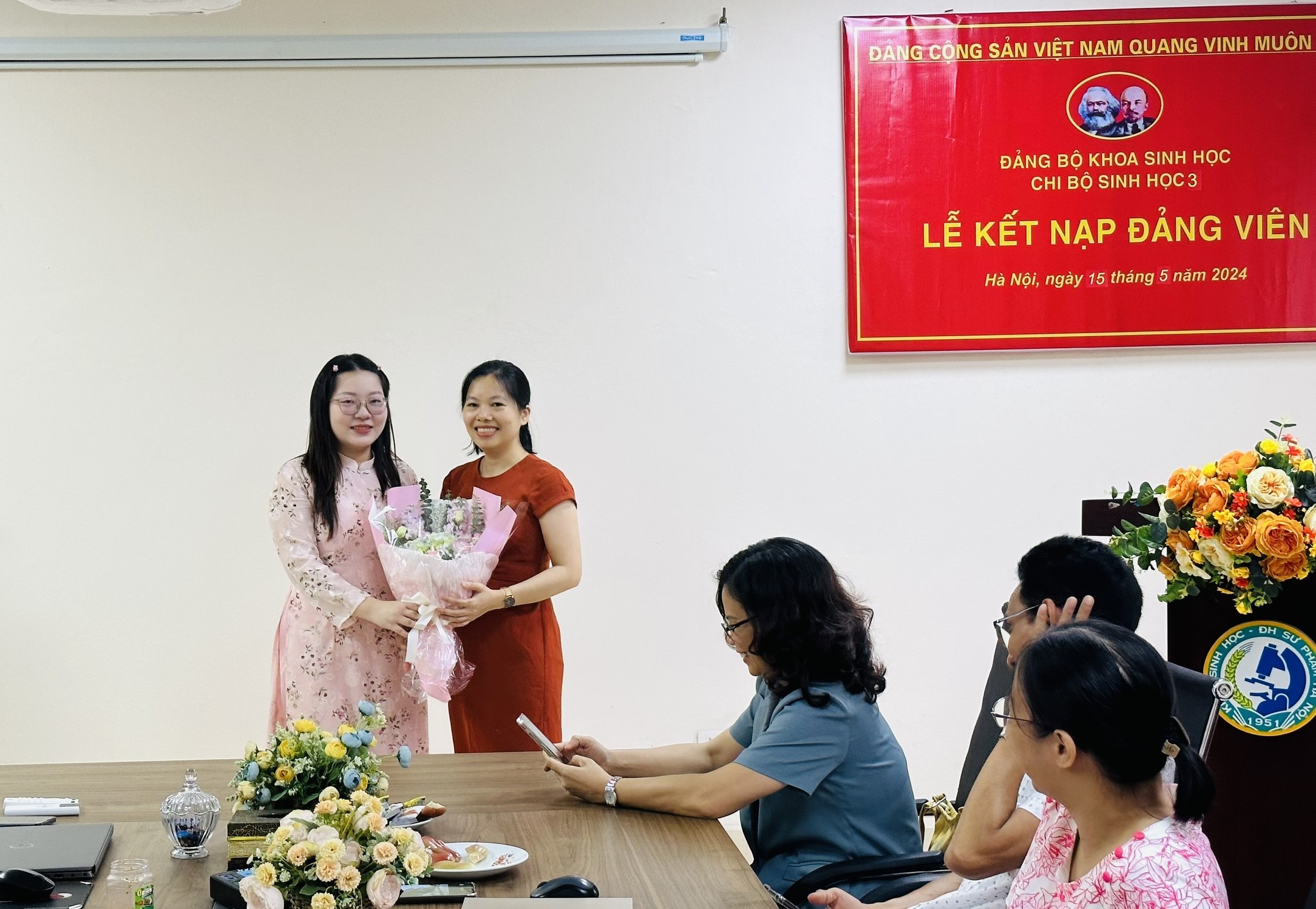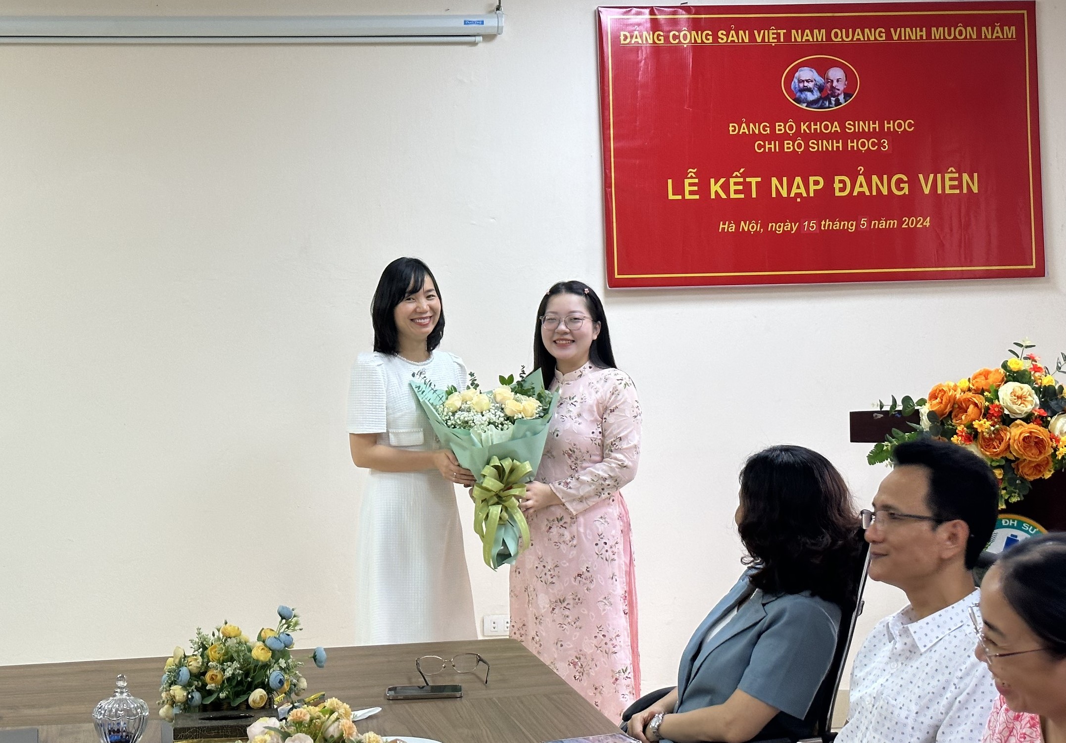 Tới dự buổi Lễ kết nạp có đồng chí Trần Thị Thanh Huyền – Phó Bí thư Đảng ủy Khoa Sinh học; đồng chí Lê Thị Phương, Ủy viên Ban chấp hành Liên chi Đoàn Khoa Sinh học; đồng chí Lê Thị Tuyết - Bí thư Chi bộ Sinh học 3; đồng chí Lê Thị Thủy – Phó Bí thư Chi bộ Sinh học 3 và toàn thể các đảng viên trong Chi bộ Sinh học 3.