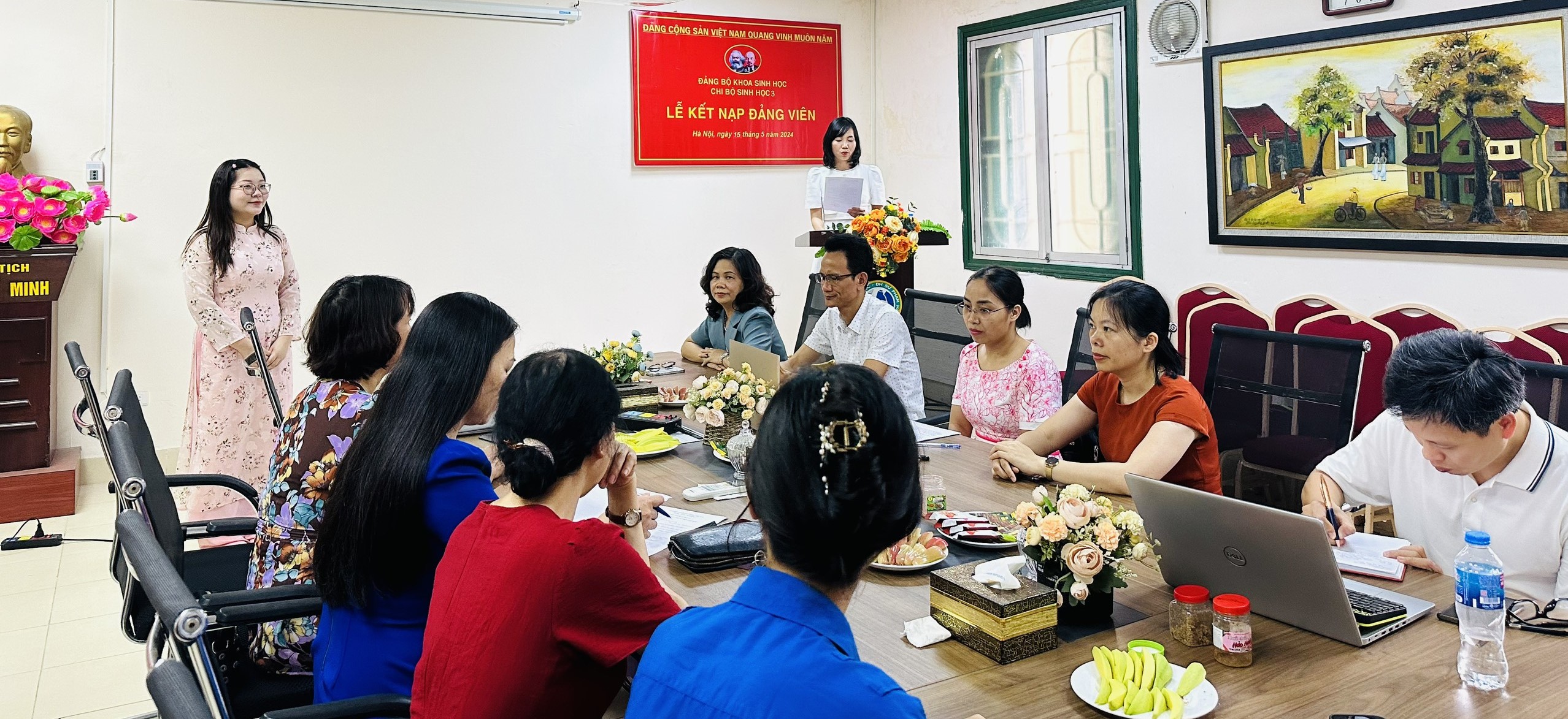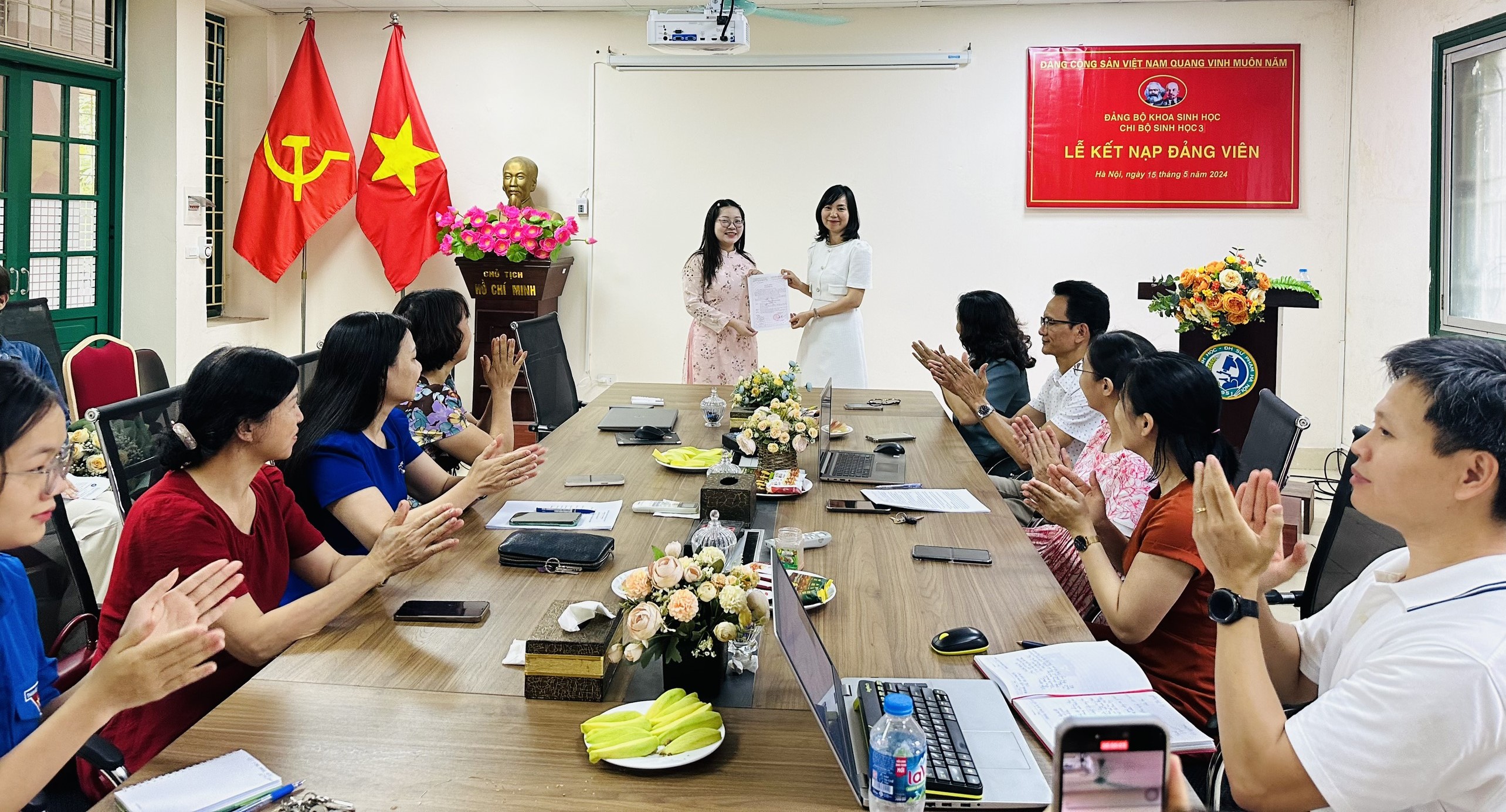 Cuối cùng, đồng chí Lê Thị Tuyết – Bí thư Chi Bộ Sinh học 3 gửi lời cảm ơn tới Đảng ủy Khoa Sinh học, Liên chi Đoàn Khoa Sinh học, Chi bộ Sinh học 3 trong công tác bồi dưỡng, phát triển Đảng. Cảm ơn đồng chí Lê Thị Thủy và cô giáo Trần Khánh Vân đã tận tình hướng dẫn và giúp đỡ đồng chí đảng viên mới trong thời gian phấn đấu vừa qua.