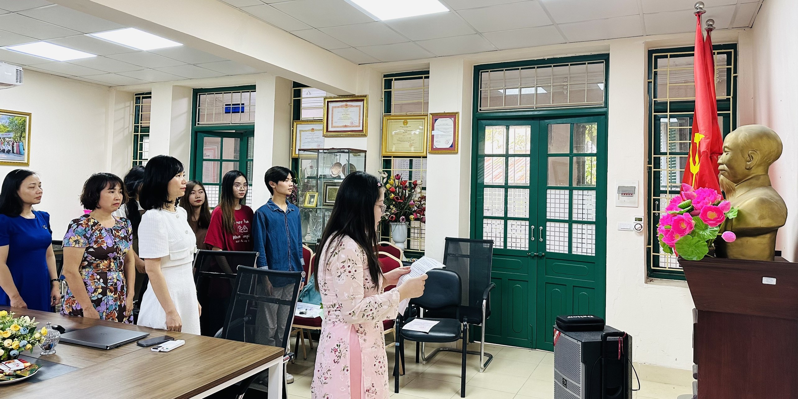 Đồng chí tân Đảng viên Đào Thị Thu Trang đã đọc lời tuyên thệ trước Quốc kỳ, Đảng kỳ và chân dung Chủ tịch Hồ Chí Minh, nguyện trung thành với lý tưởng và mục tiêu Cách mạng của Đảng, thực hiện nghiêm túc các nhiệm vụ của Đảng viên, đóng góp tích cực vào việc xây dựng Đảng, xứng đáng là Đảng viên của Đảng cộng sản Việt Nam.