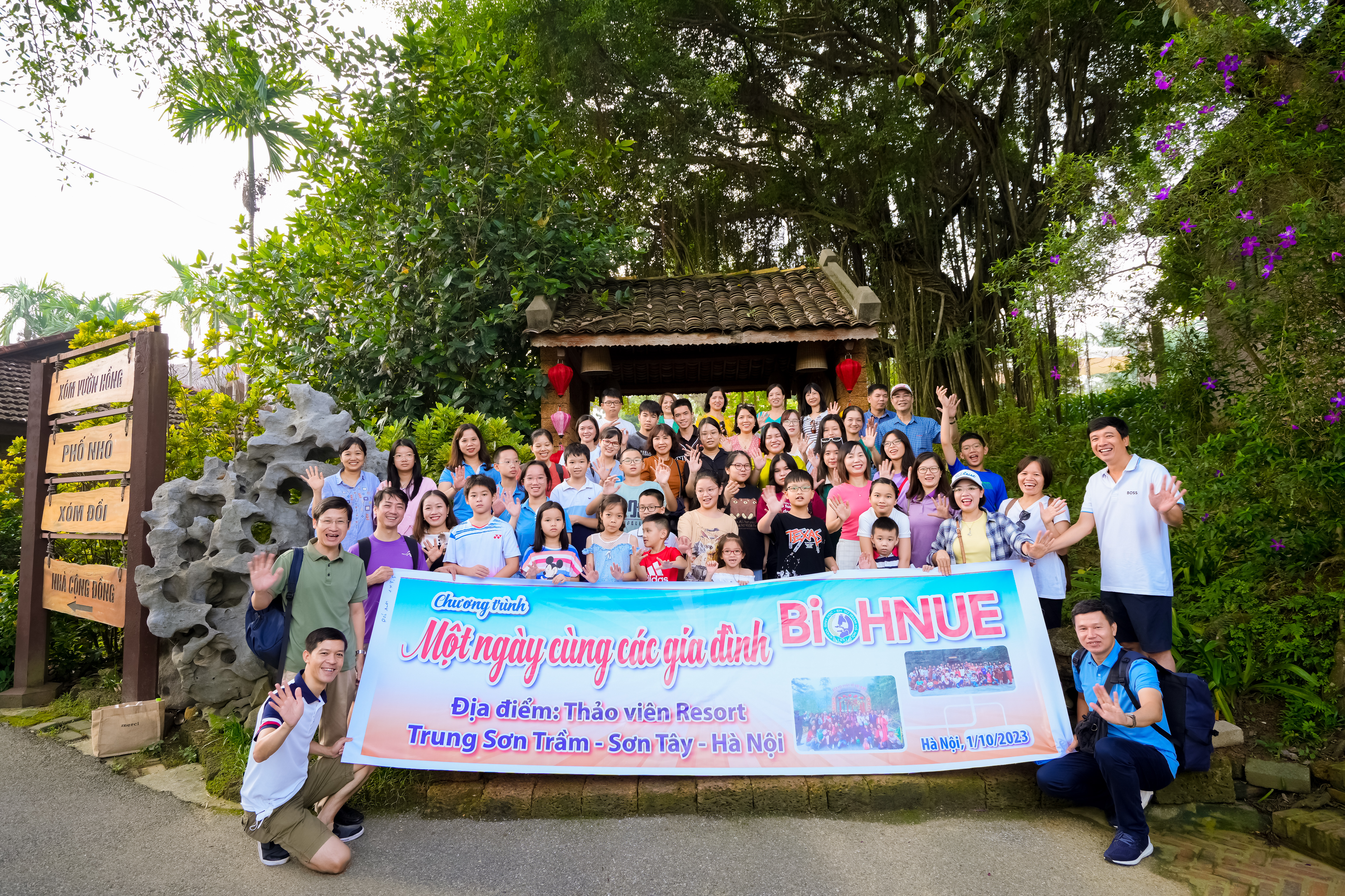 Trong tiết trời đầu thu nắng dịu nhẹ và man mát lạnh, Thảo Viên resort đón đoàn BioHNUE với màu xanh mướt của cây cối, điểm xuyết màu cam-vàng của hoa thiên điểu hay vườn hồng, vườn hoa mua đang khoe sắc tuyệt đẹp đến những kiến trúc với những ngôi nhà sàn cộng đồng của các dân tộc phía Bắc đến những khu nhà cộng đồng tiện nghi, khang trang.