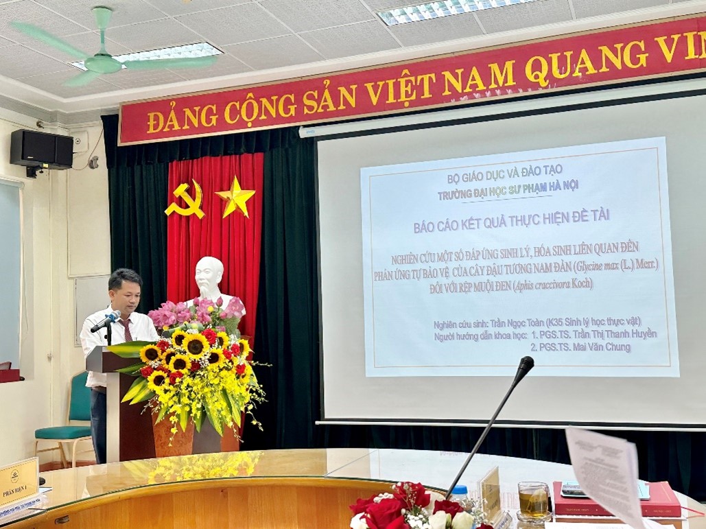 Luận án của NCS Trần Ngọc Toàn là một nghiên cứu bài bản, có tính hệ thống về các đáp ứng sinh lý, hóa sinh của cây đậu tương Nam Đàn với sự tấn công của rệp muội đen. Đây là một công trình nghiên cứu có ý nghĩa khoa học và thực tiễn cao, kết quả của luận án là những dẫn liệu khoa học có giá trị đối với lĩnh vực Sinh lý học thực vật nói chung và các nghiên cứu về tính chống chịu của thực vật nói riêng. Kết quả này đồng thời mở ra hướng ứng dụng trong chọn tạo giống đậu tương kháng rệp, cũng như tìm kiếm các biện pháp hiệu quả để phòng trừ rệp muội đen – một loại côn trùng gây hại ảnh hưởng lớn đến năng suất và chất lượng đậu tương trong đó có đậu tương Nam Đàn – giống đậu tương gắn liền với thương hiệu “tương Nam Đàn” của tỉnh Nghệ An.