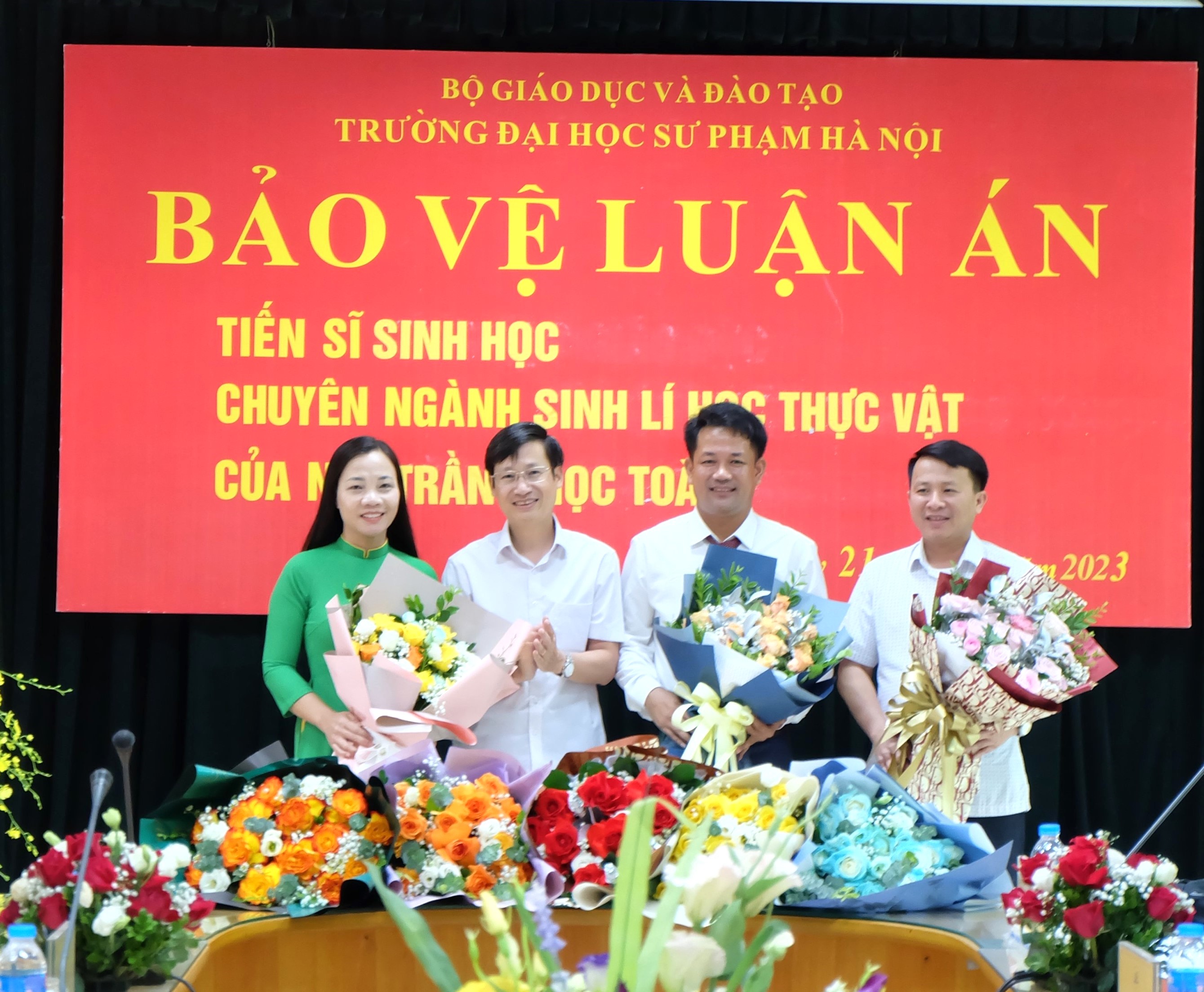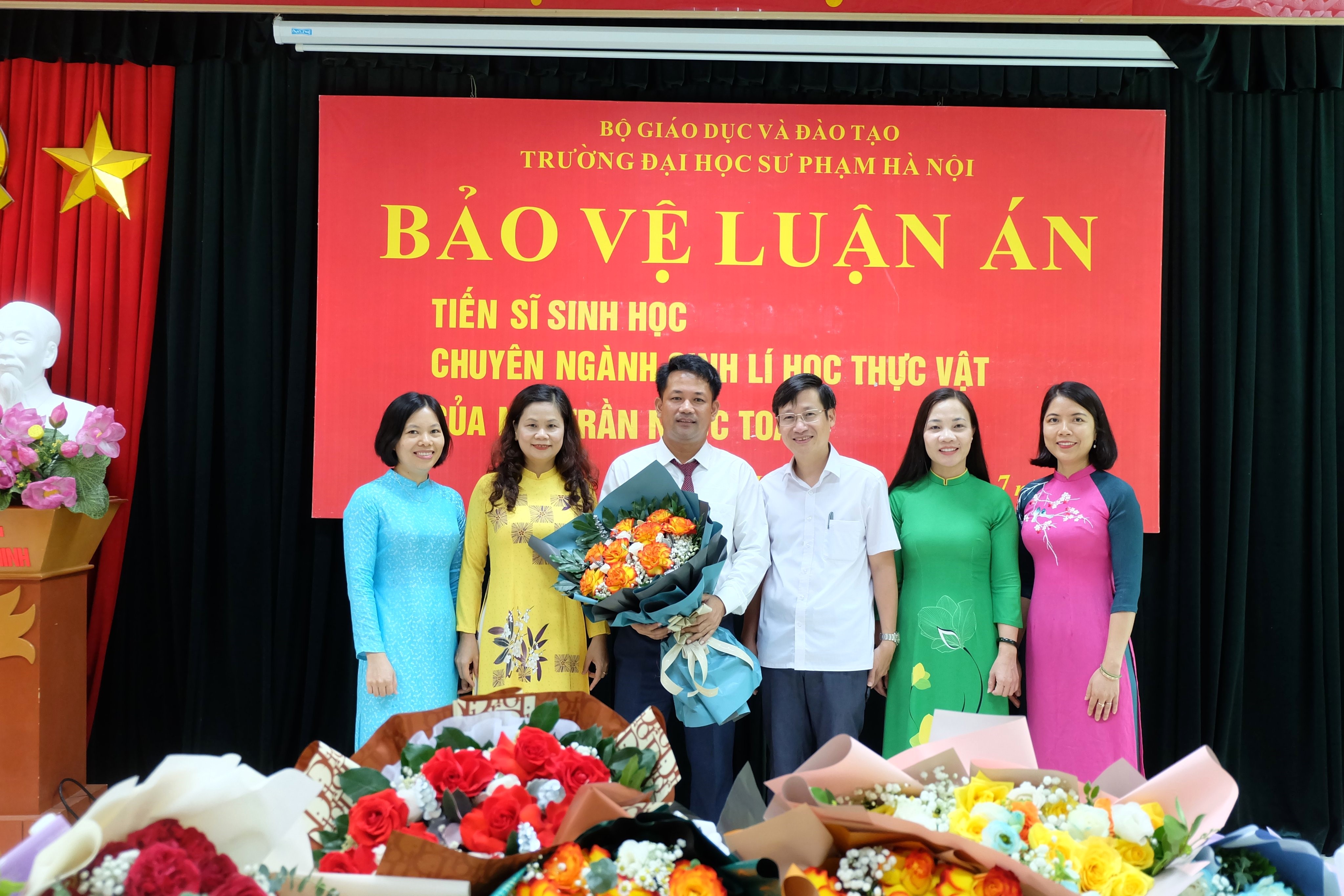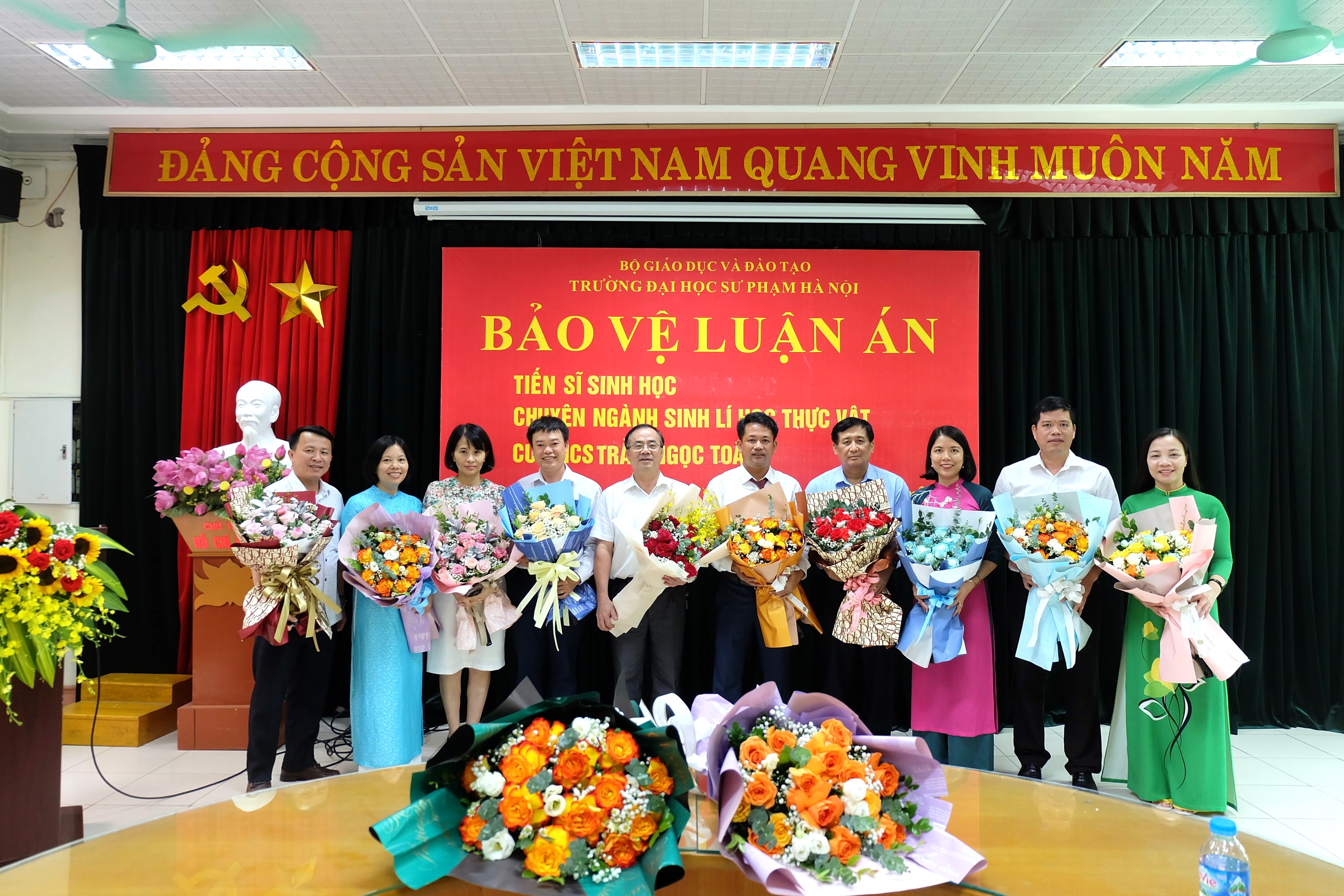 Ảnh 4. Trưởng Khoa Sinh học và Bộ môn Sinh lý học thực vật - Ứng dụng chúc mừng NCS