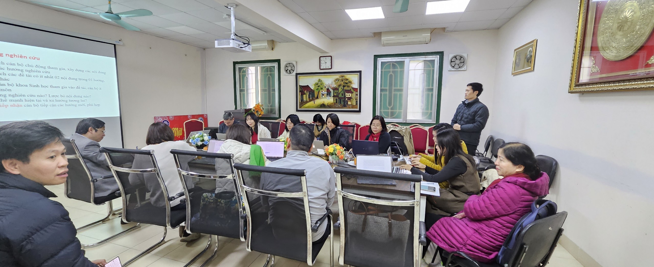 Sau phần trình bày của PGS.TS. Trần Đức Hậu, các giảng viên trong Khoa đã tham gia thảo luận sôi nổi dưới sự điều hành của PGS.TS. Nguyễn Lân Hùng Sơn – Trưởng Khoa Sinh học. Nội dung thảo luận tập trung vào một số vấn đề liên quan đến các hướng nghiên cứu, cách thức chia sẻ kết quả nghiên cứu khoa học, chính sách khen thưởng cho cán bộ có thành tích xuất sắc trong nghiên cứu khoa học, cách thức xây dựng nhóm nghiên cứu mạnh...Trao đổi tại buổi tọa đàm, TS. Nguyễn Văn Quyền (Bộ môn Thực vật học) đã chia sẻ một số khó khăn trong quá trình thực hiện nghiên cứu, như cơ chế quản lý, điều hành, quy định liên quan đến thanh quyết toán đề tài khoa học và công nghệ, dẫn đến những vướng mắc khi triển khai các đề tài nghiên cứu. TS. Lê Thị Tươi (Bộ môn Di truyền – Hóa sinh) cho rằng việc cùng một lúc vừa thực hiện nhiệm vụ giảng dạy vừa hướng dẫn sinh viên, học viên khiến cán bộ bị hạn chế về thời gian cho hoạt động nghiên cứu khoa học. Bên cạnh đó, năng lực của người học tham gia vào các đề tài nghiên cứu còn hạn chế, trong khi chuyên môn sâu là rào cản để các giảng viên mở rộng hướng nghiên cứu và hợp tác với các đơn vị khác trong và ngoài trường. Ngoài ra, người học còn chưa thật sự hứng thú, đam mê với hoạt động nghiên cứu khoa học là vấn đề được TS. Nguyễn Thị Trung Thu (Bộ môn Sinh lý học người và động vật) đề cập đến khi nói về khó khăn trong triển khai các đề tài theo hướng điều tra, thực nghiệm.