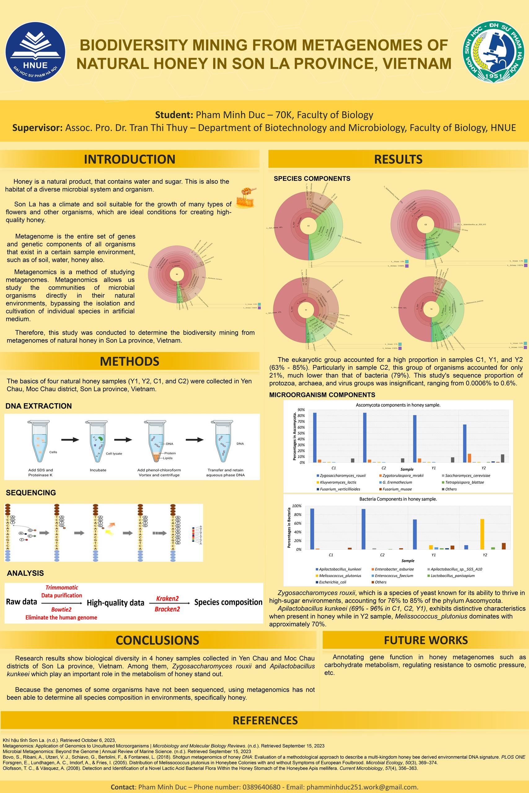 Trong số 18 poster tham dự Hội nghị, Ban giám khảo đã chấm và trao giải cho 6 poster với 01 giải Nhất, 02 giải Nhì và 03 giải Ba. Ngoài ra, 18 poster tham gia Hội nghị đã được giới thiệu và chia sẻ tới cộng đồng người học thông qua fanpage của Liên chi đoàn Khoa Sinh học. Qua đây, Ban tổ chức cũng đã trao giải cho 01 poster được yêu thích nhất dựa trên kết quả tương tác trên fanpage. Ban tổ chức Hội nghị giới thiệu đến thầy cô và các bạn sinh viên các poster này.